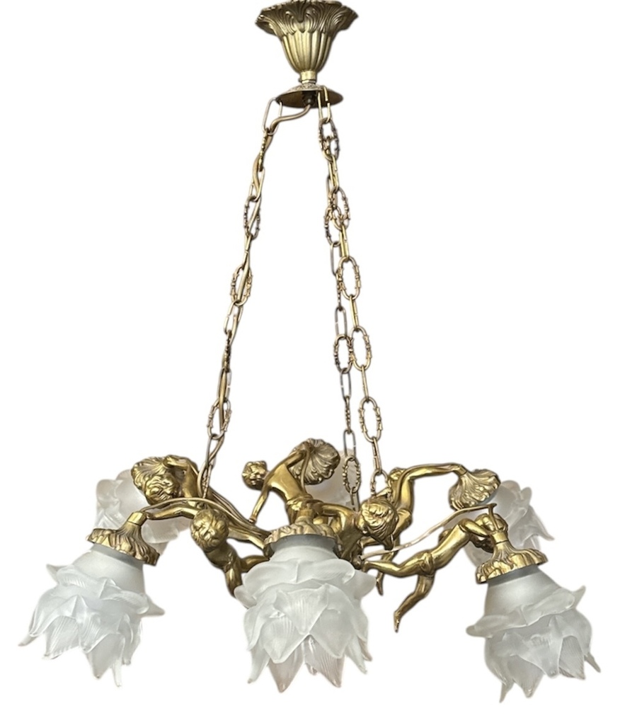 992. Messing hanglamp met cherubijnen, tweede helft 20e eeuw