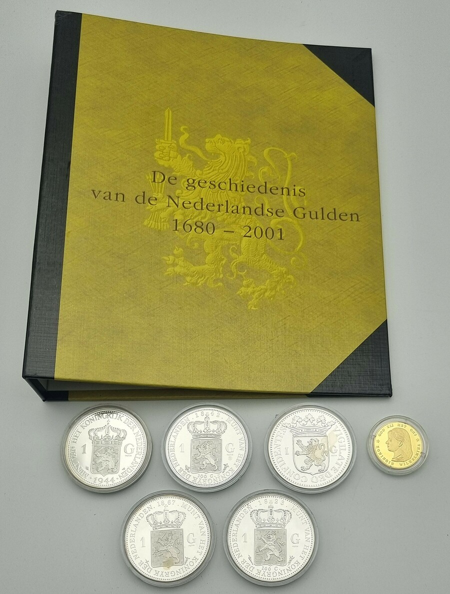 De collectie "De geschiedenis van de Nederlandse Gulden" bestaat uit replica's in sterling 925/1000 zilver en 24 karaats verguld sterling 925/1000 zilver, geslagen ter gelegenheid van het afscheid van de Nederlandse Gulden. In deze set zitten een replica van 1 gulden zilver 1680, een replica 1 gulden zilver 1823, een replica 1 gulden zilver 1842, een replica 1 gulden zilver 1867, een replica 10 gulden 1895 en een 1 gulden replica zilver 1944. Uitgegeven 2001.