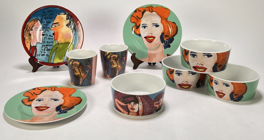 Servies van Heinrich Winterling en Seltmann Weiden in postmoderne stijl, vervaardigd uit porselein met handbeschilderde figuratieve decoraties. Het ensemble omvat kopjes, kommen en borden met expressieve portretten, tekstfragmenten en kleurvlakken. De voorstellingen zijn ontworpen door kunstenaars met een beperking, verbonden aan Atelier Amerpoort. Gemerkt aan de onderzijde met fabrieksmerken, kunstenaarsnamen en jaartallen. Het servies dateert uit 2007–2011 en heeft een Nederlandse herkomst.
