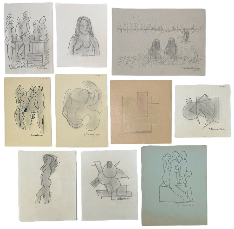 Tekeningen van Klaas Boonstra (1905–1999) omvatten tien verschillende voorstellingen in expressionistische, surrealistische en kubistische stijl, uitgevoerd in potlood op papier. De verzameling bevat figuratieve naakten, groepscomposities en geometrische abstracties met hoekige contouren en lineaire arceringen. Gesigneerd en deels gedateerd 1935–1964. De tekeningen hebben een Nederlandse herkomst.