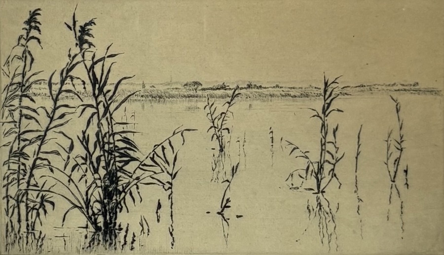 725. Ets Riekele Prins – Groninger landschap met riet, ca. 1945