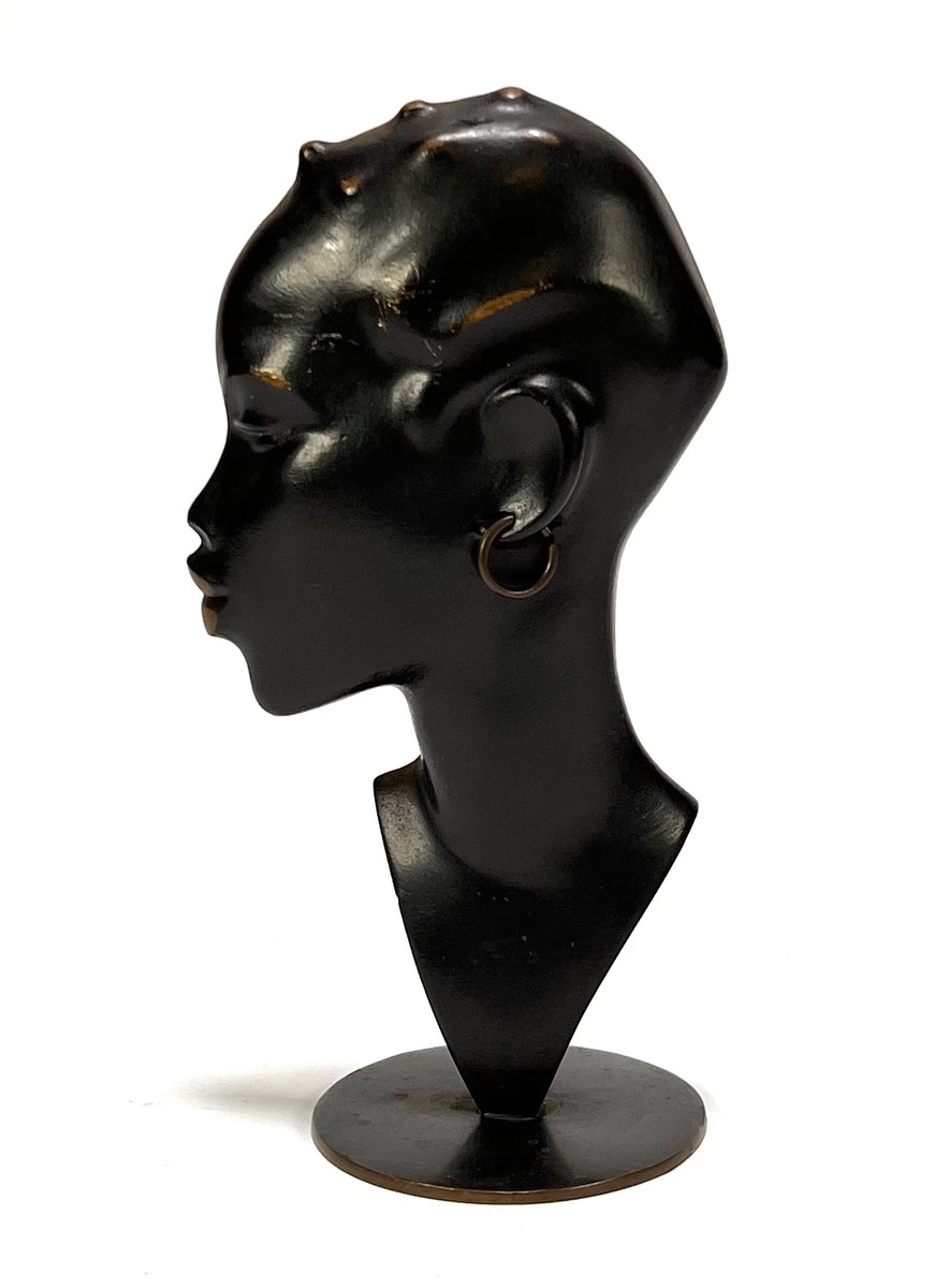Beeld door Richard Rohac (1906–1956) vervaardigd uit metaal met een zwarte patinering. Het beeld toont een gestileerd profiel gemonteerd op een ronde voetplaat. Gemerkt aan de onderzijde met monogram RR en Made in Austria. Het beeld dateert uit circa 1950 en heeft een Oostenrijkse herkomst.