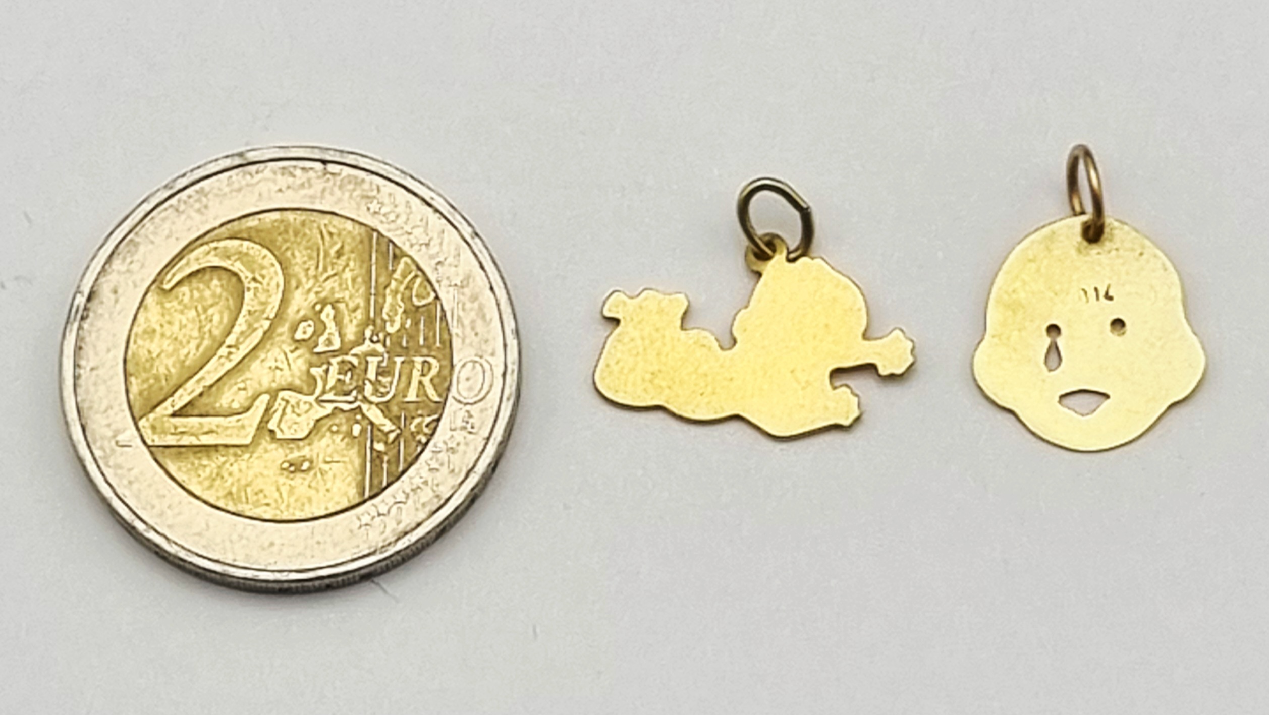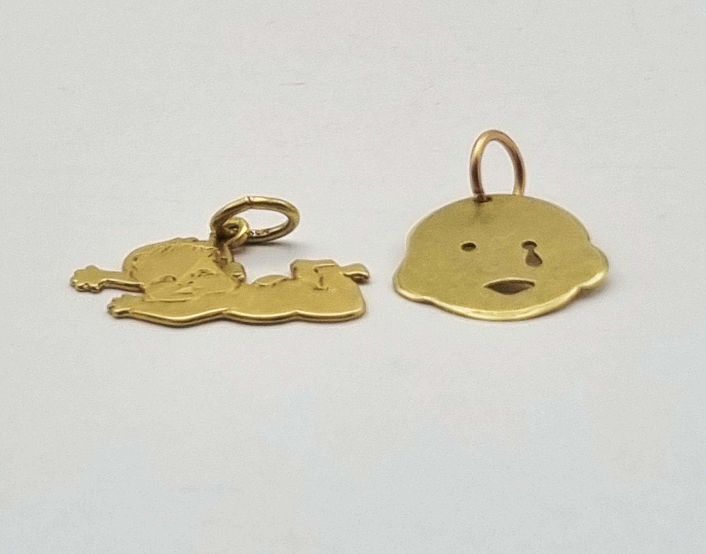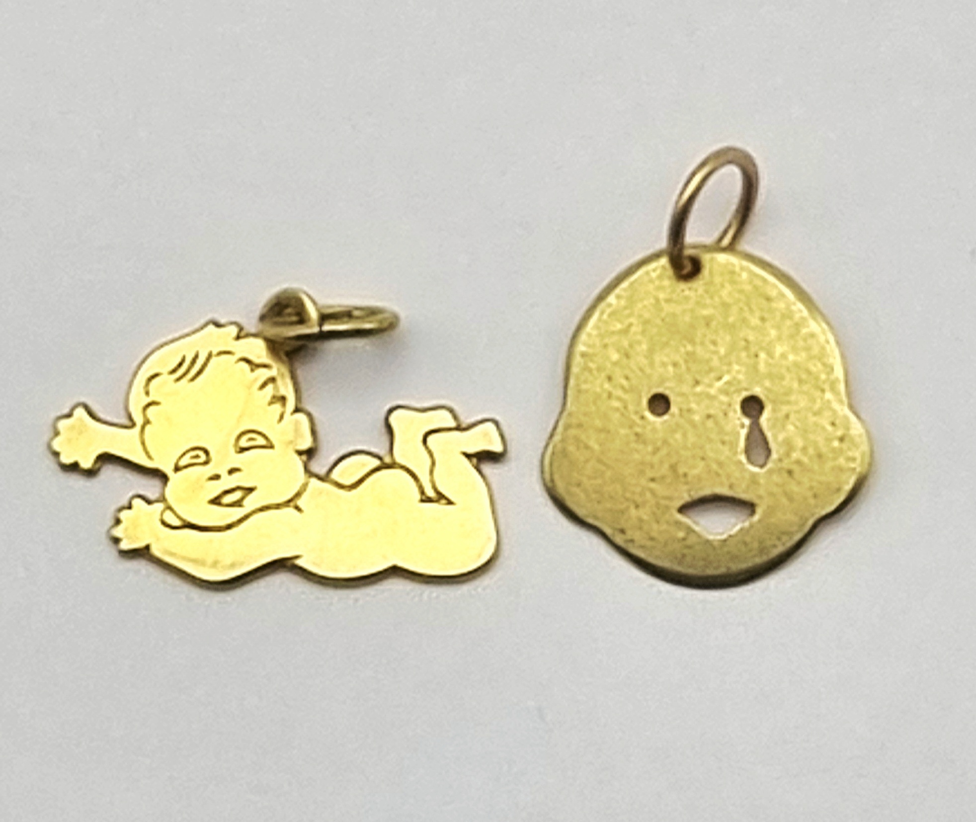 Gouden bedels - baby en gezichtje, tweede helft 20e eeuw