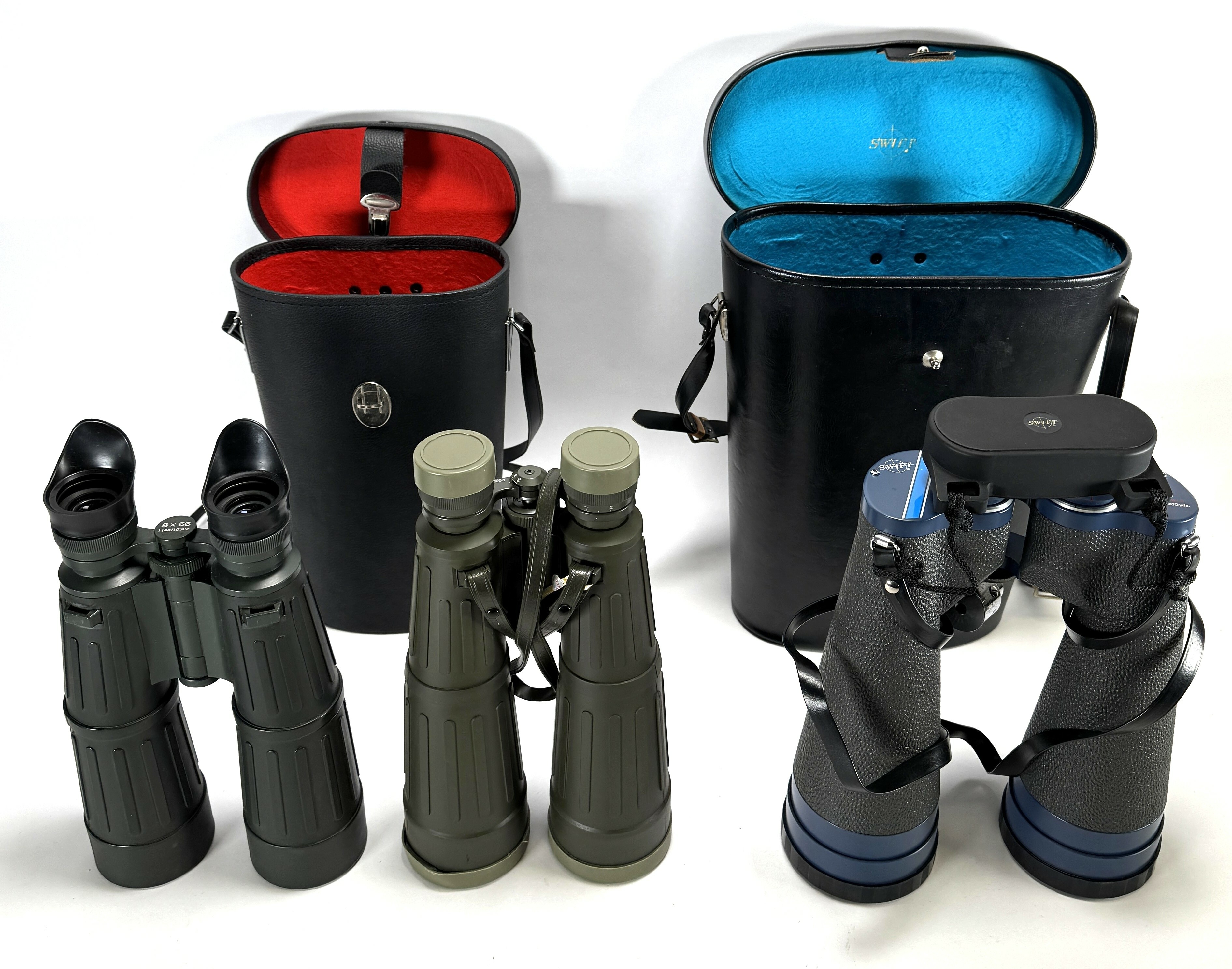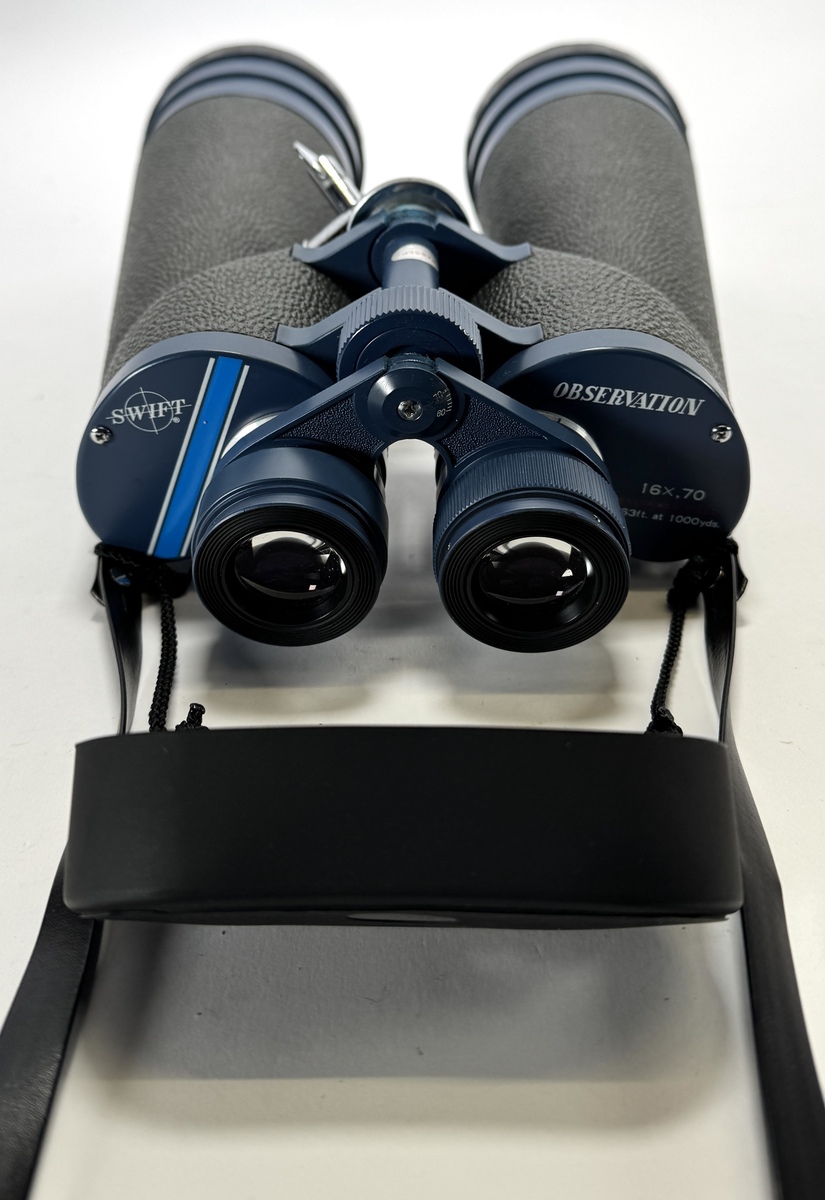 Verrekijkers vervaardigd uit metaal, kunststof, rubber en glas. De kavel omvat een Swift Observation 16x70, een 8x56 verrekijker met markering 114m/1000m en een 8x63 verrekijker met opschrift Field 6°. Twee verrelijkers bevinden zich in de originele draagkoker, datering tweede helft van de 20e eeuw. Klaar om te bieden? Registreer je nu en doe mee aan de veiling! |