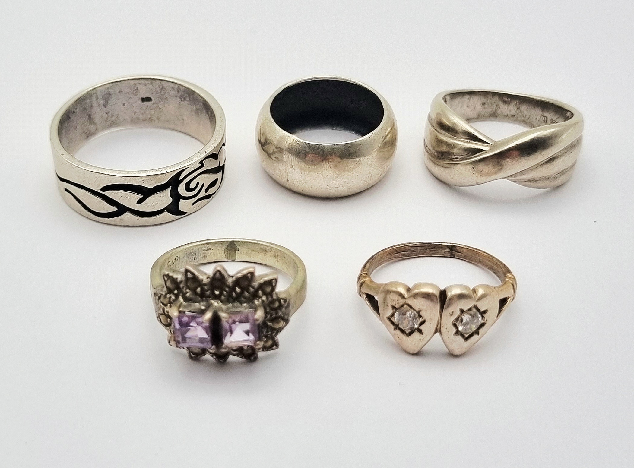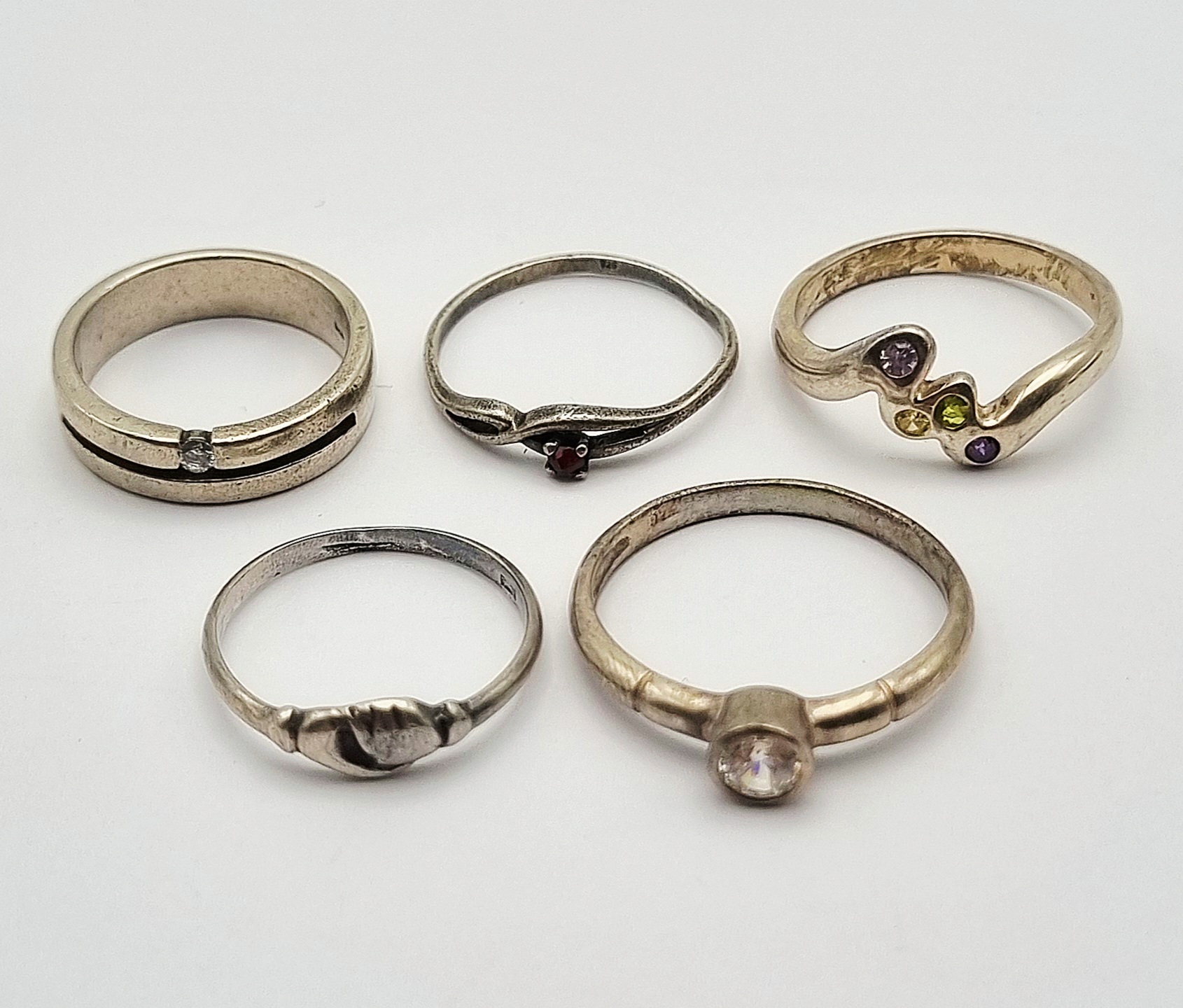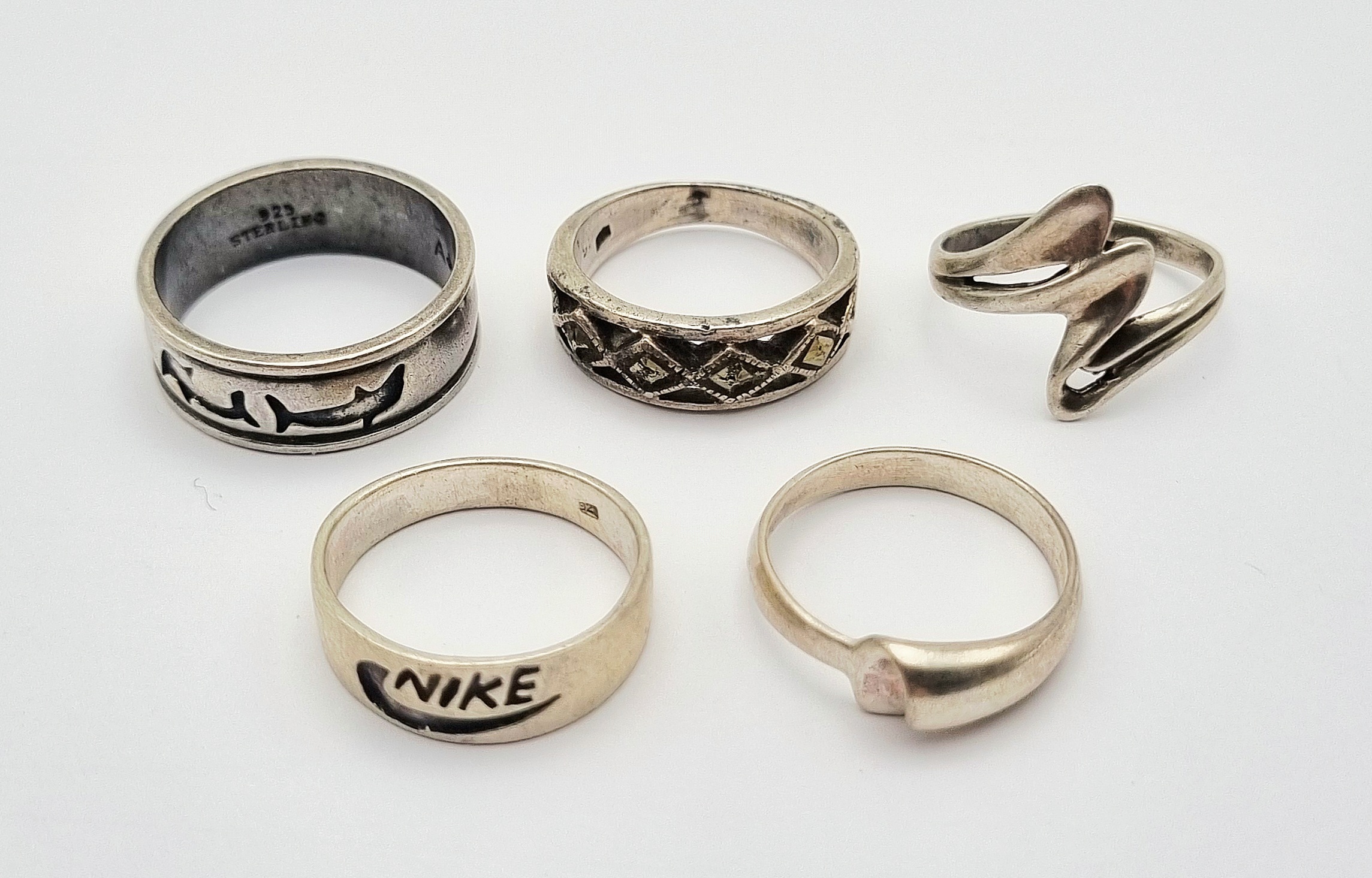 Vijftien zilveren ringen, grotendeels uitgevoerd in eerste en tweede gehalte zilver. De verzameling bevat uiteenlopende ontwerpen, van strakke modernistische bandringen, een ring met het Nike-logo tot verfijnde ringen bezet met diverse stenen. Datering eind 20e eeuw. Klaar om te bieden? Registreer je nu en doe mee aan de veiling! |