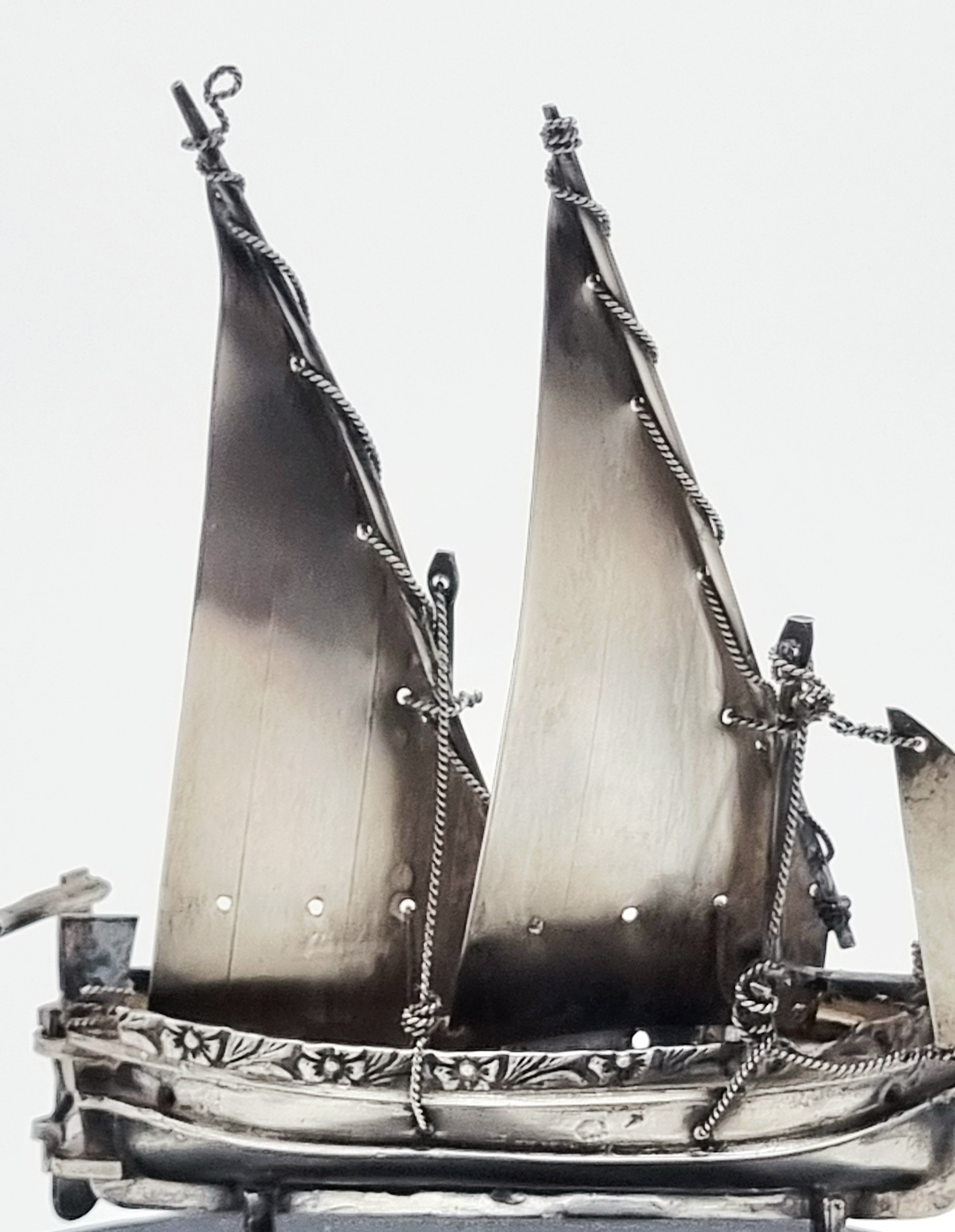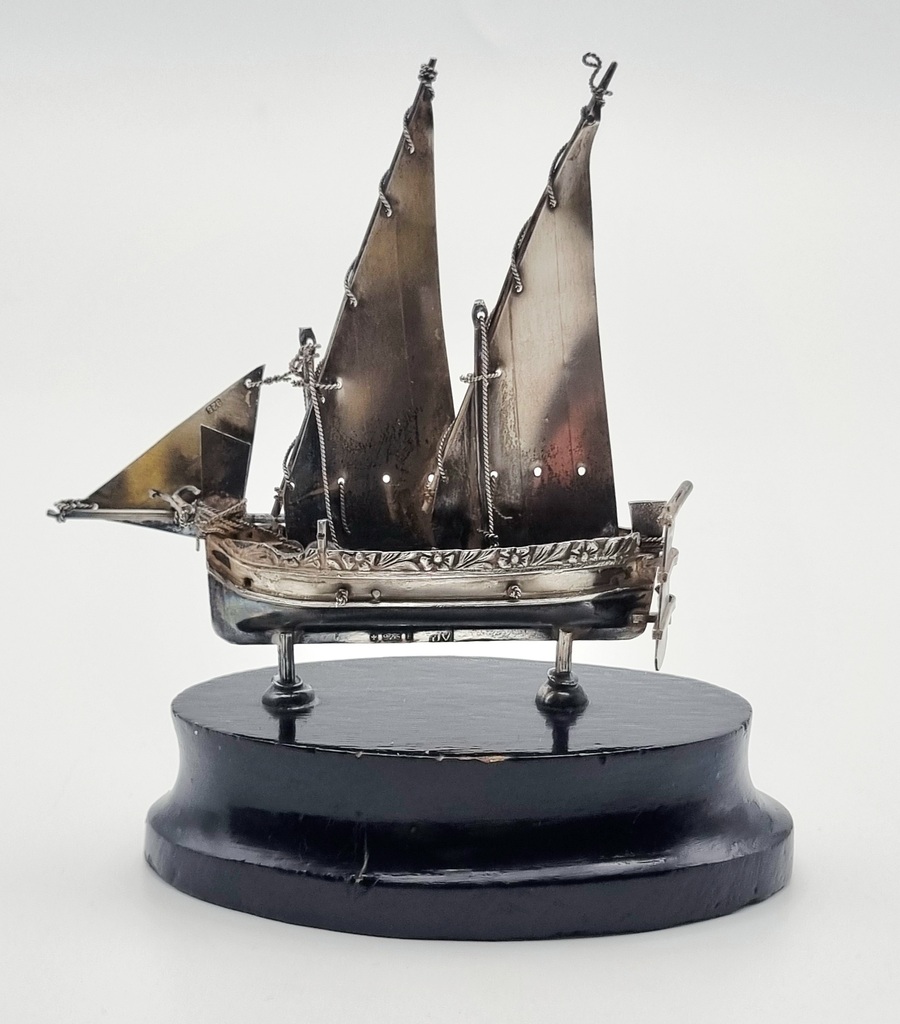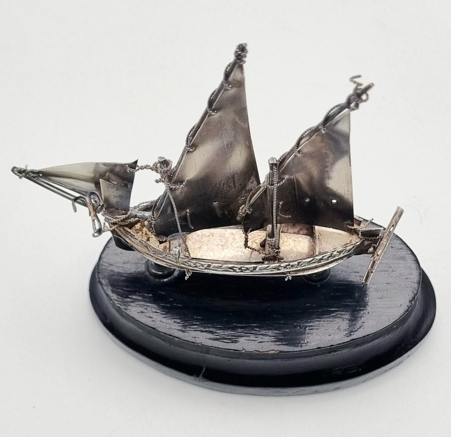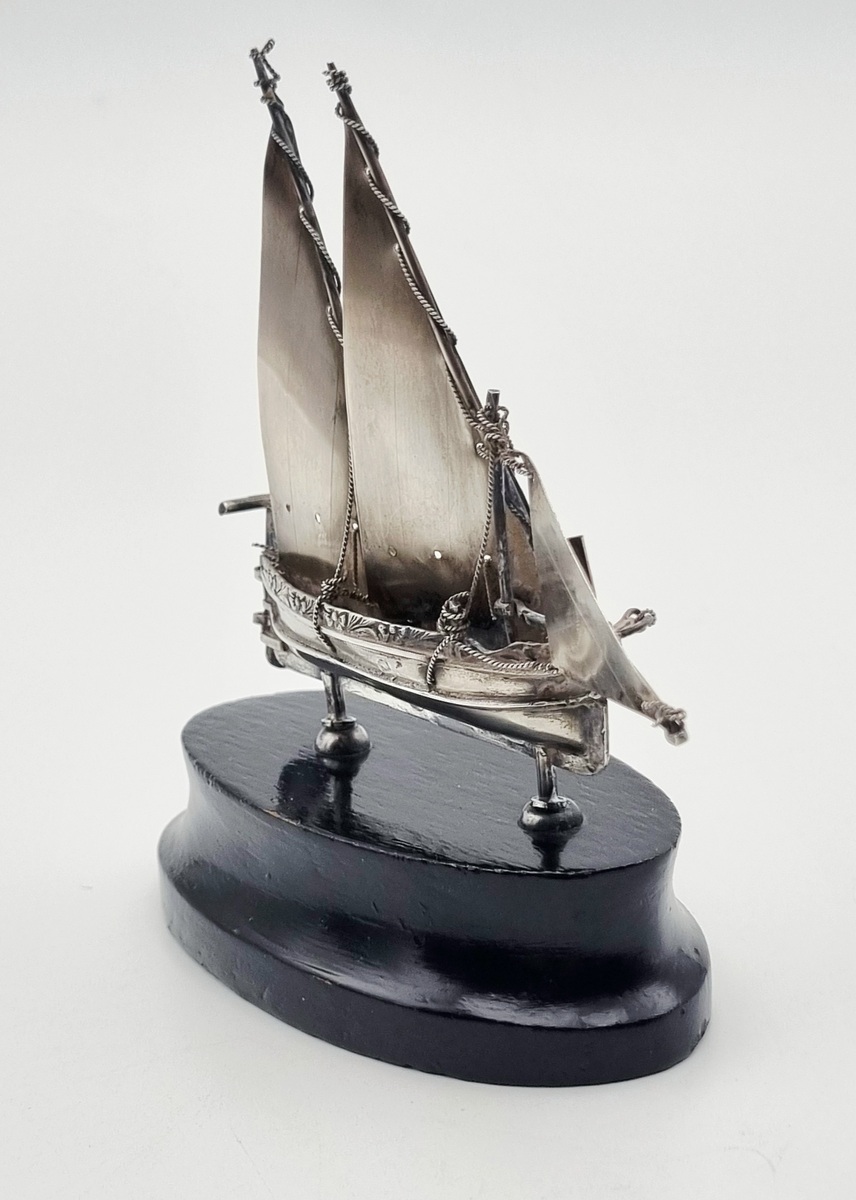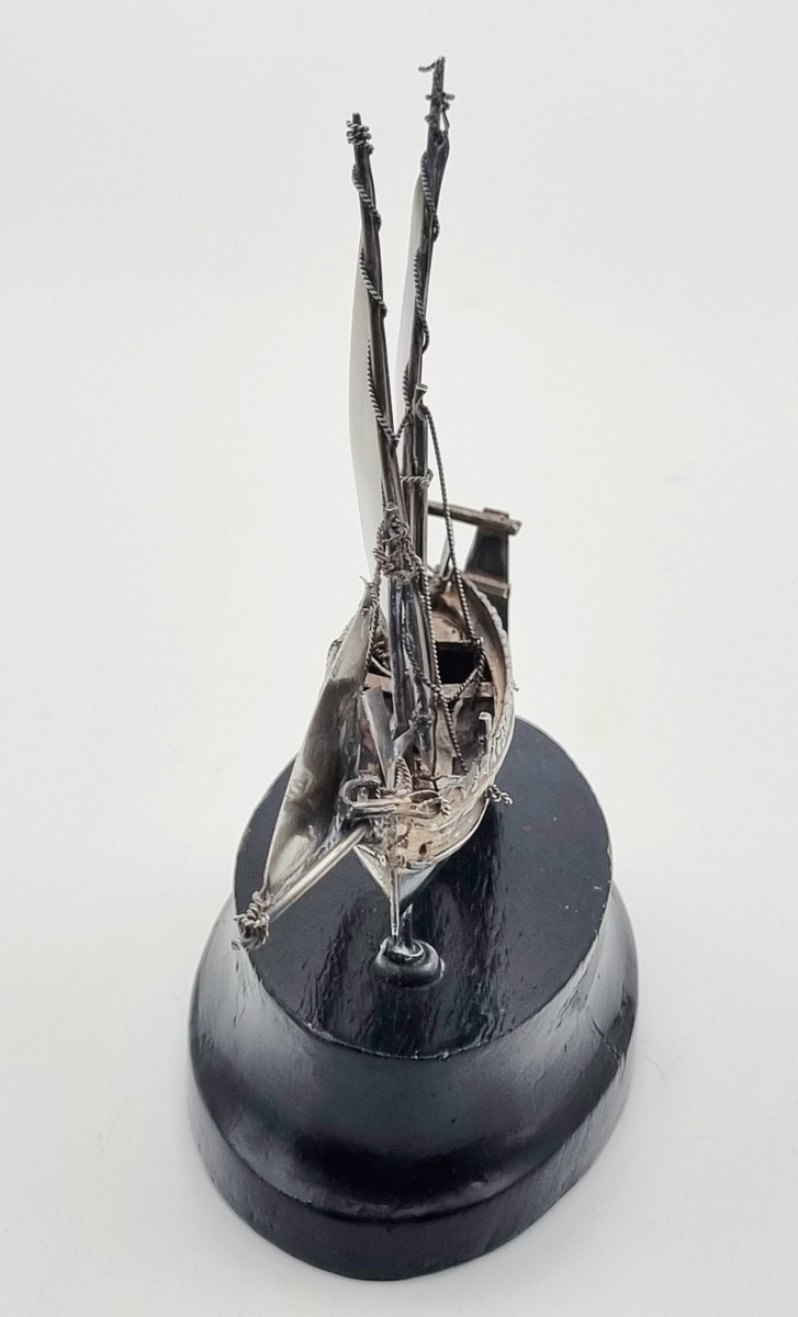 Sterling zilveren miniatuur zeilschip, 20e eeuw
