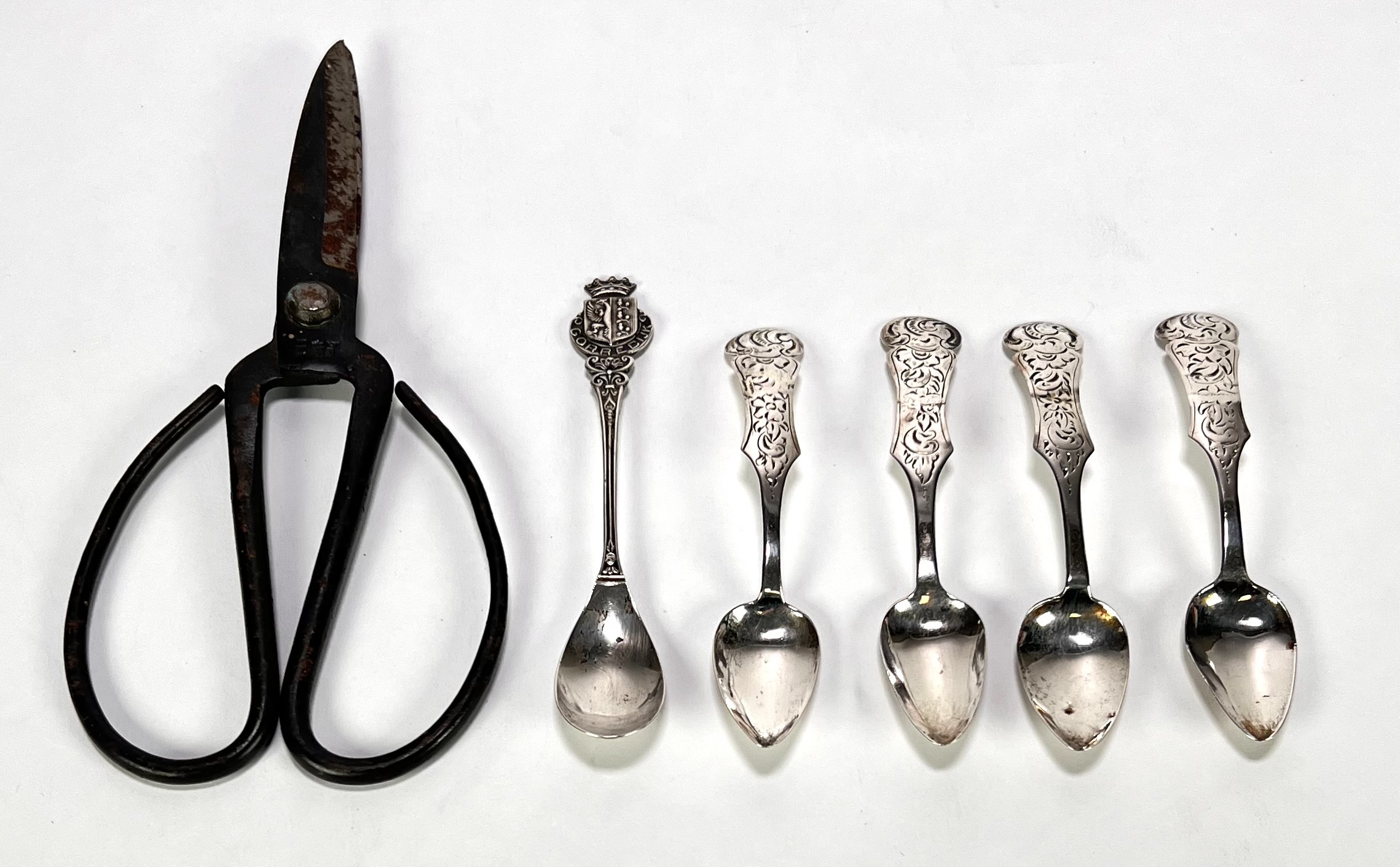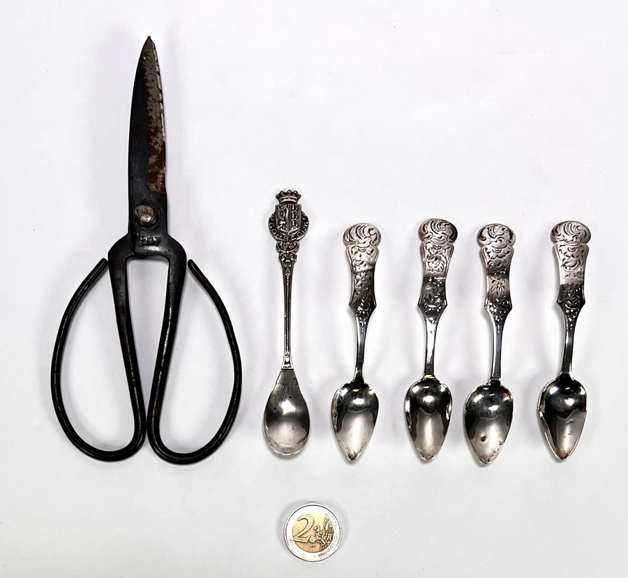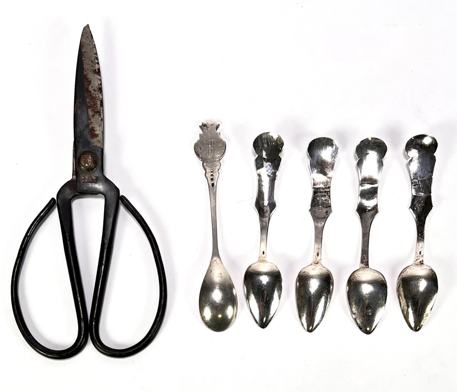 Zilveren theelepels en ijzeren schaar – begin 20e eeuw