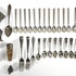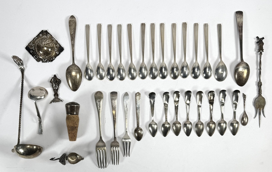 Zilveren bestek - lepels, vorken, sauslepel, flesstopper en theelepels, 19e/20e eeuw