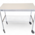 Bijzettafel vervaardigd uit een grijs gelakt ijzeren onderstel met een wit houten blad. De verrijdbare tafel is uitgevoerd met twee niveaus, waarbij het onderste gedeelte is voorzien van een metalen rek. De strakke vormgeving en functionele zwenkwielen zijn typerend voor industrieel design rond 1960, een Europese herkomst. De bijzettafel zelf beoordelen? Je bent welkom op onze kijkdagen op 10, 11 en 12 april! |