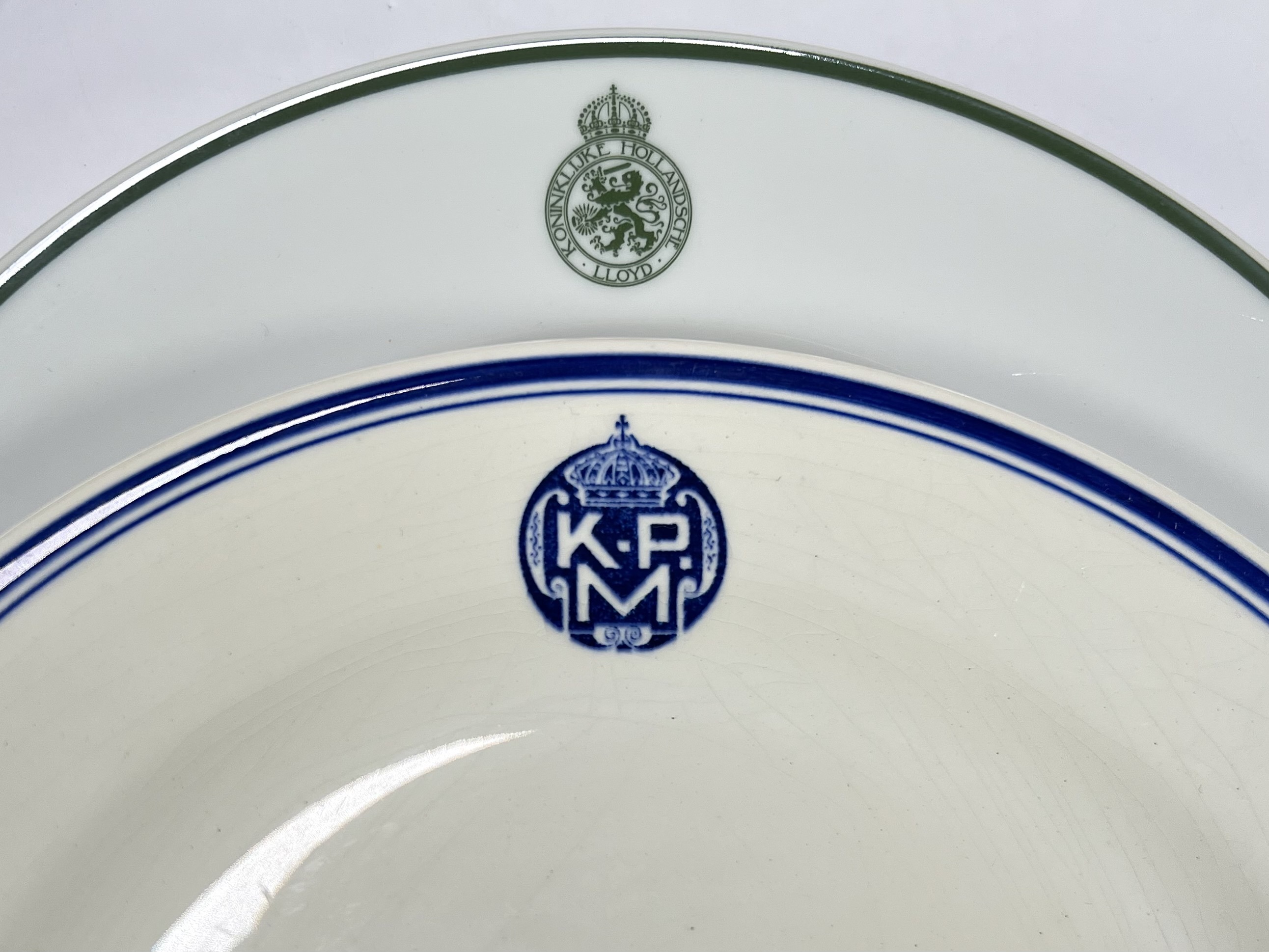 Borden van diverse fabrikanten waaronder Petrus Regout en Hutschenreuther, vervaardigd uit keramiek en porselein met vignetten van Nederlandse stoomvaartmaatschappijen. De verzameling omvat acht borden waaronder één wandbord voor het tachtigjarig jubileum van de Stoomvaart Maatschappij Nederland in 1950. De borden tonen logo's van de Rotterdamsche Lloyd en K.P.M. De borden dateren uit midden 20e eeuw met een Nederlandse herkomst. Deze borden wachten op een nieuwe eigenaar. Doe mee met de veiling! |