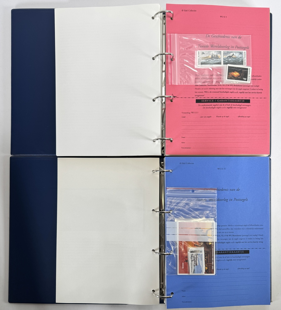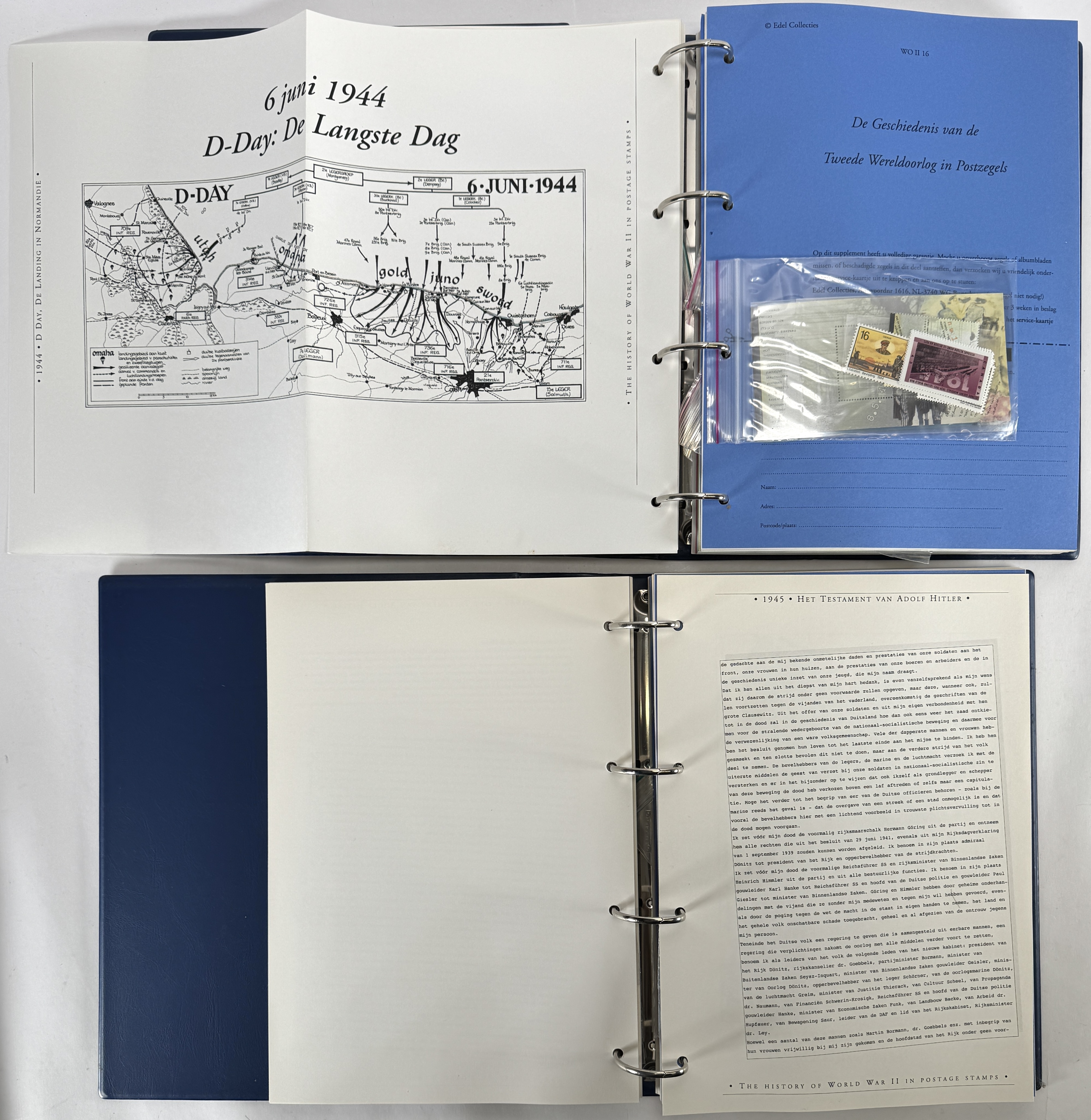 Motief verzameling bestaande uit vier delen gericht op de geschiedenis van de Tweede Wereldoorlog. De collectie bevat tevens een gedeelte gewijd aan honderd jaar automobilisme in postzegels. Deze thematische verzameling is ondergebracht in blauwe kunstlederen banden met goudopdruk en bevat diverse internationale uitgiftes. De albums dateren uit eind 20e eeuw. Ontdek deze verzameling postzegels en voeg deze toe aan jouw collectie! Registreer nu. |