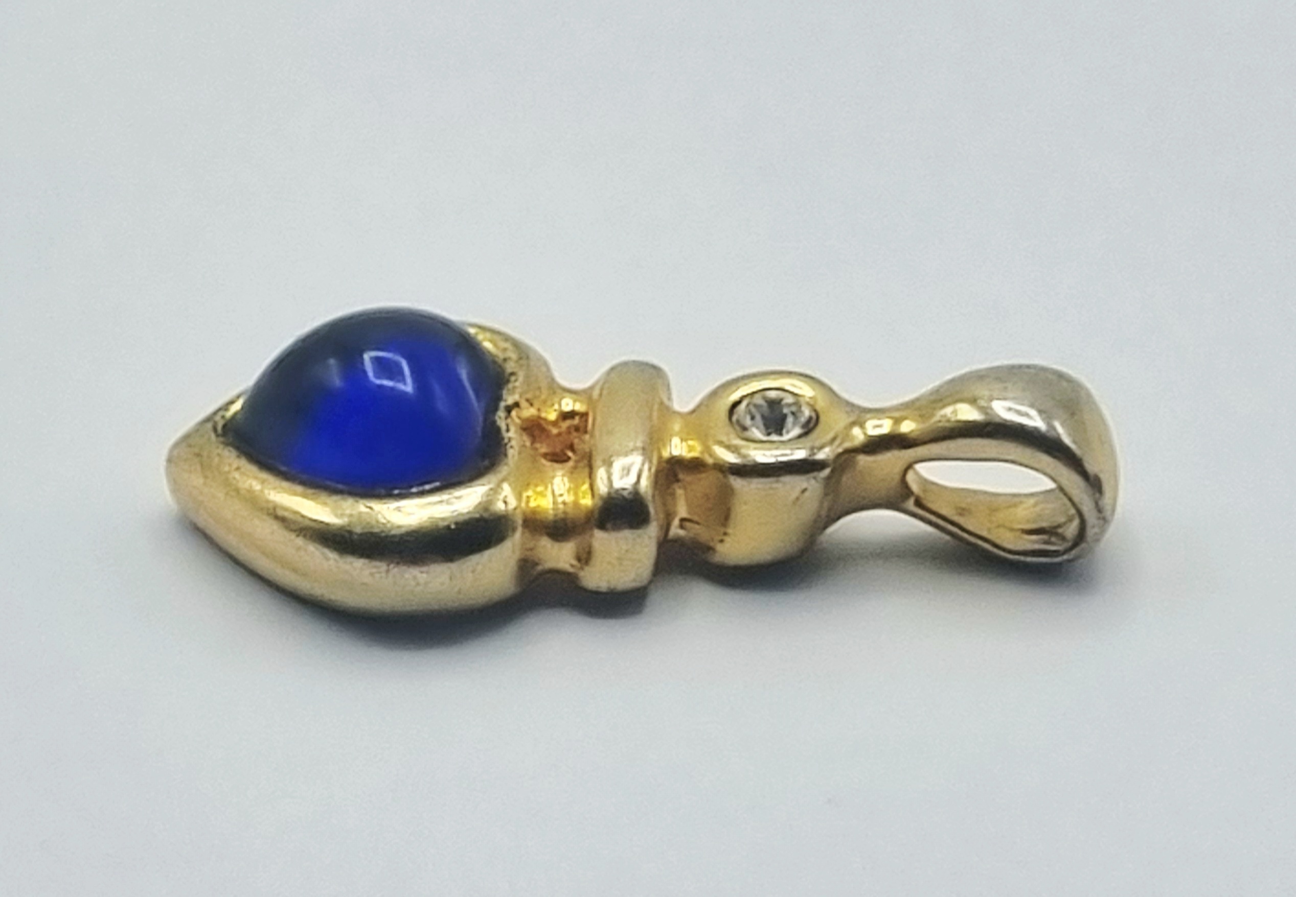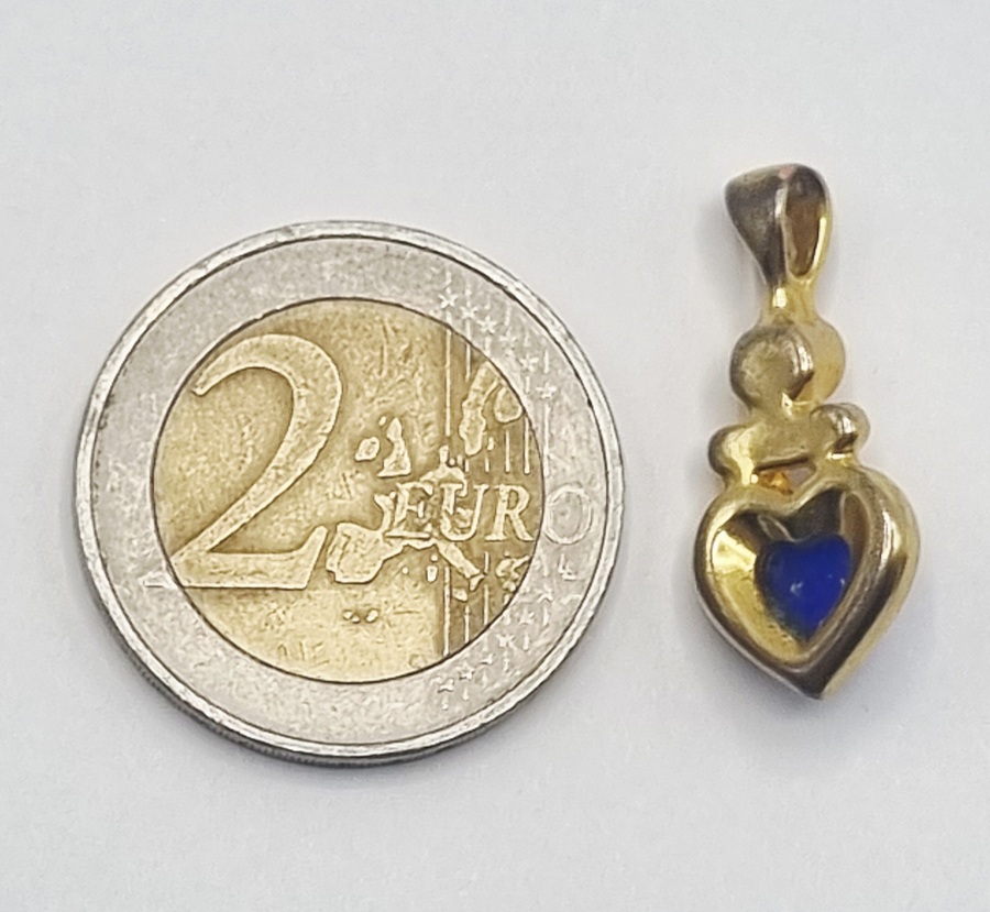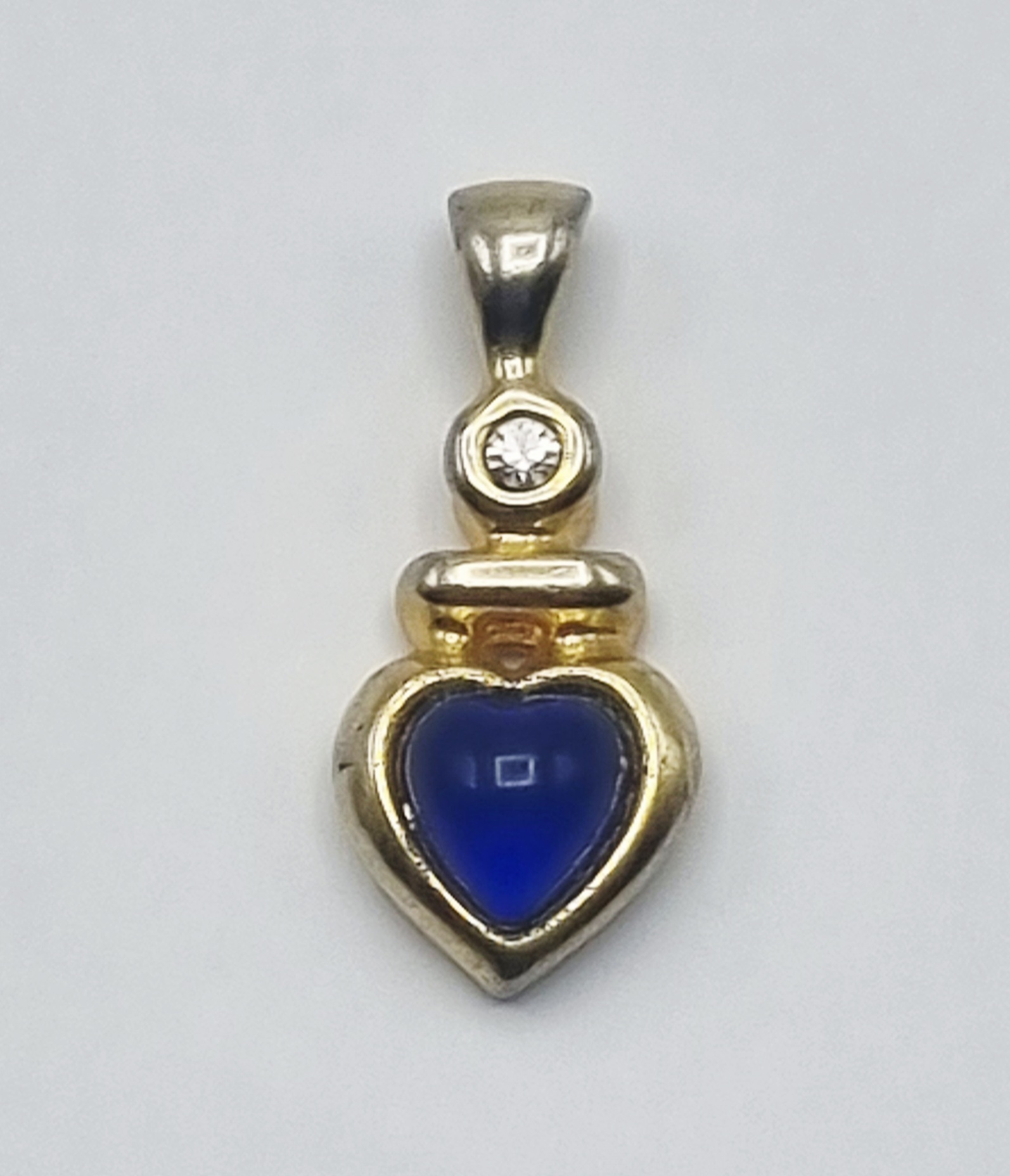 Goudkleurige halsketting met hartvormige hanger en blauwe steen, eind 20e eeuw