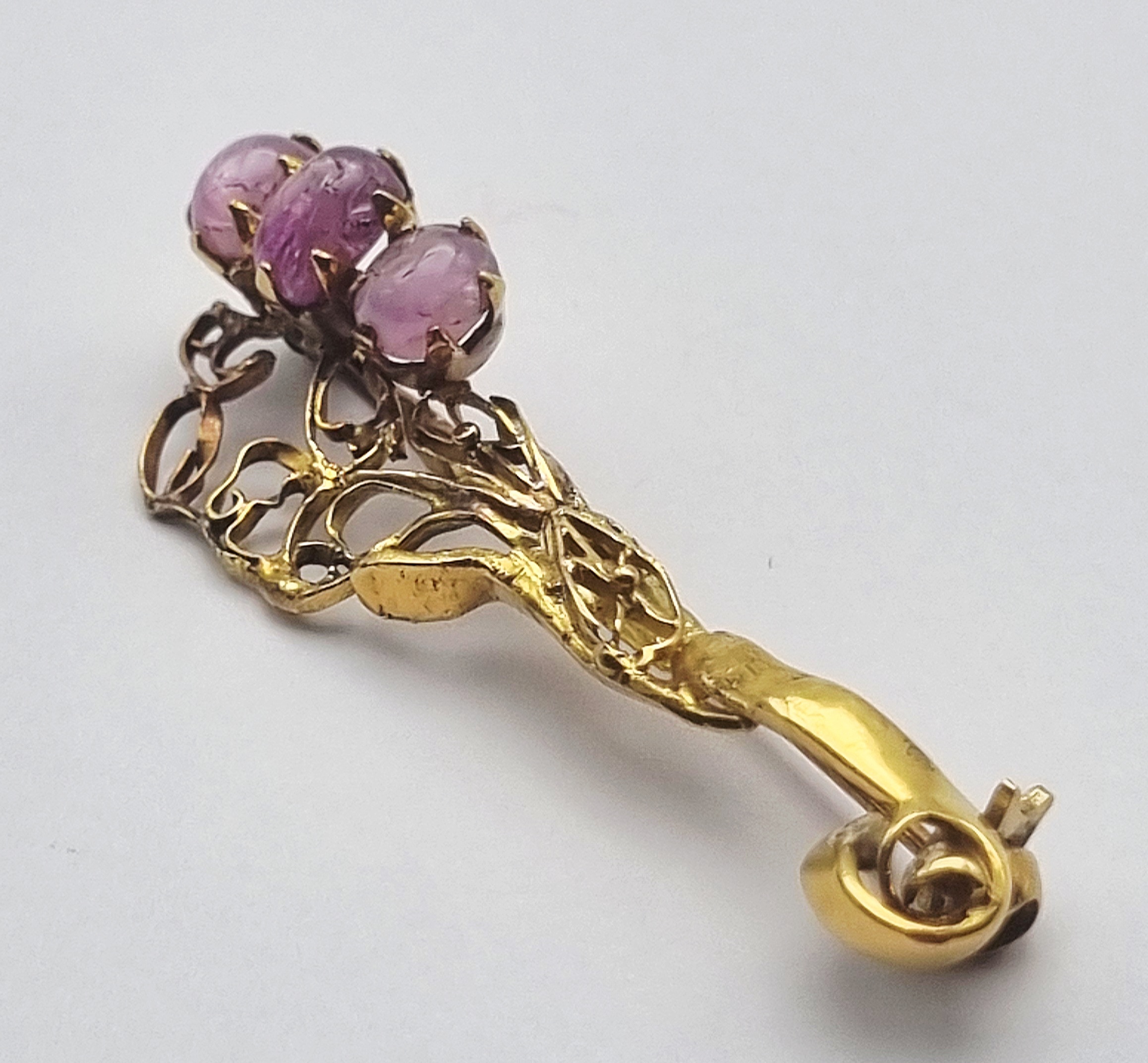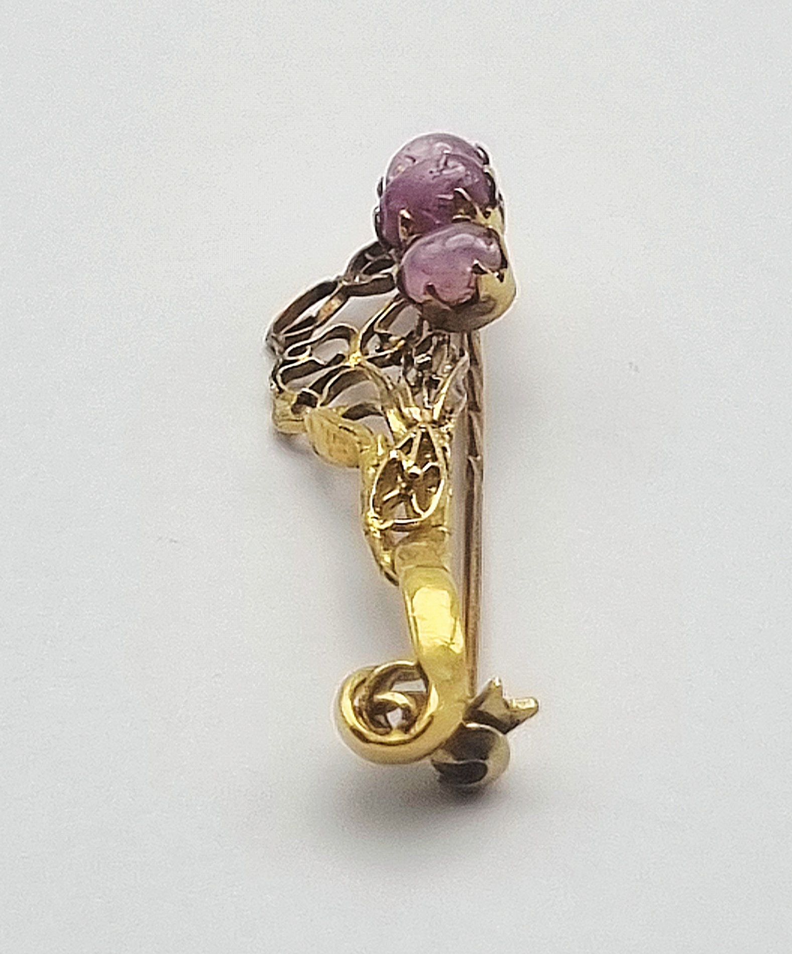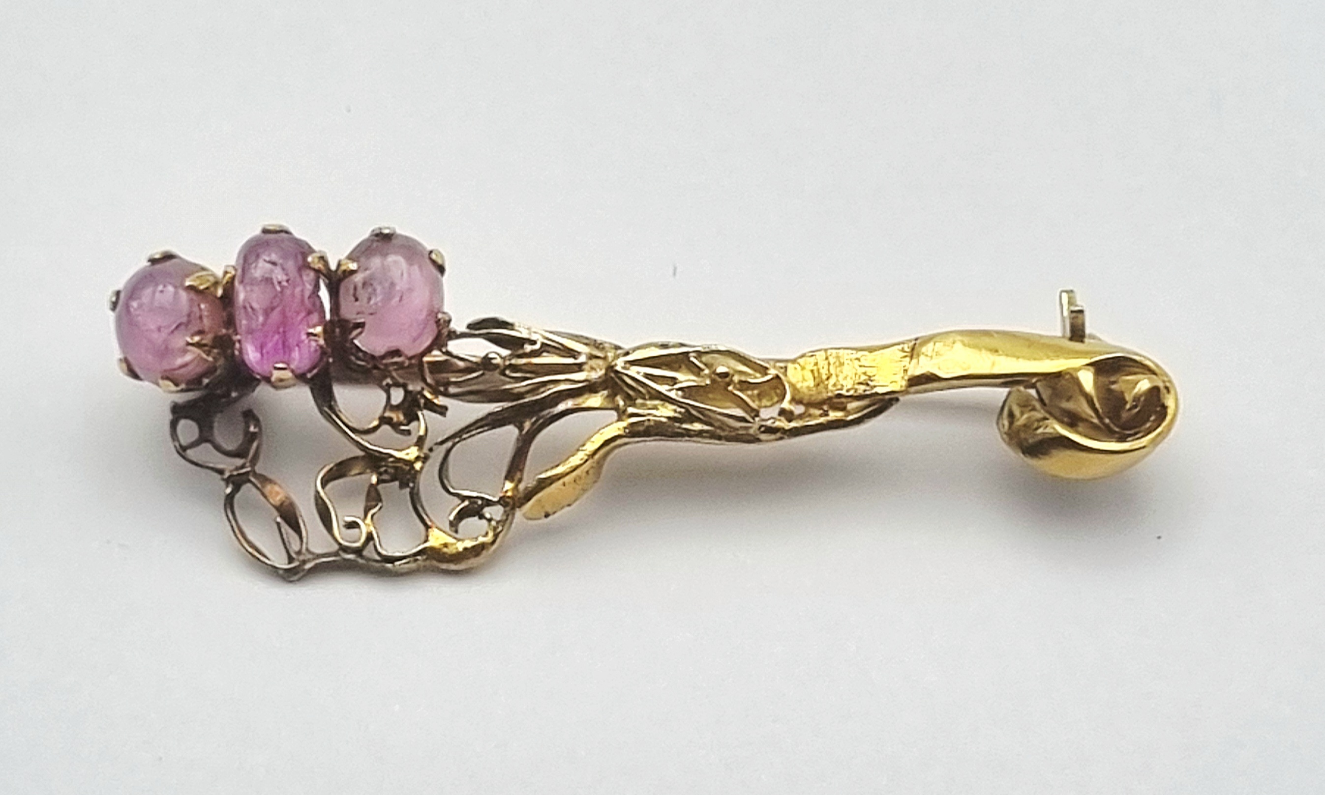 | Kavelnummer en naam | 1079. Art Nouveau gouden broche met sterrobijnen, ca. 1900 | |