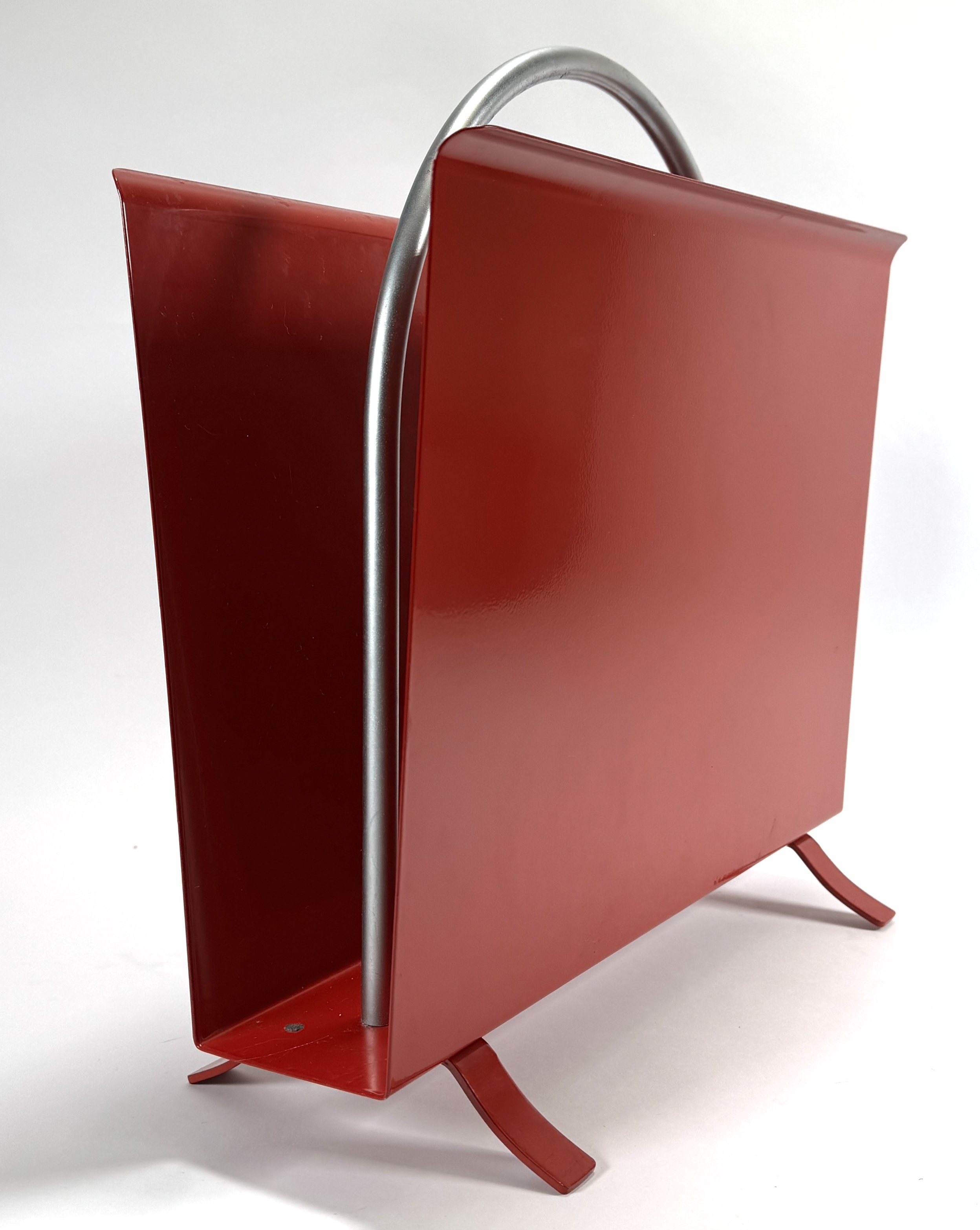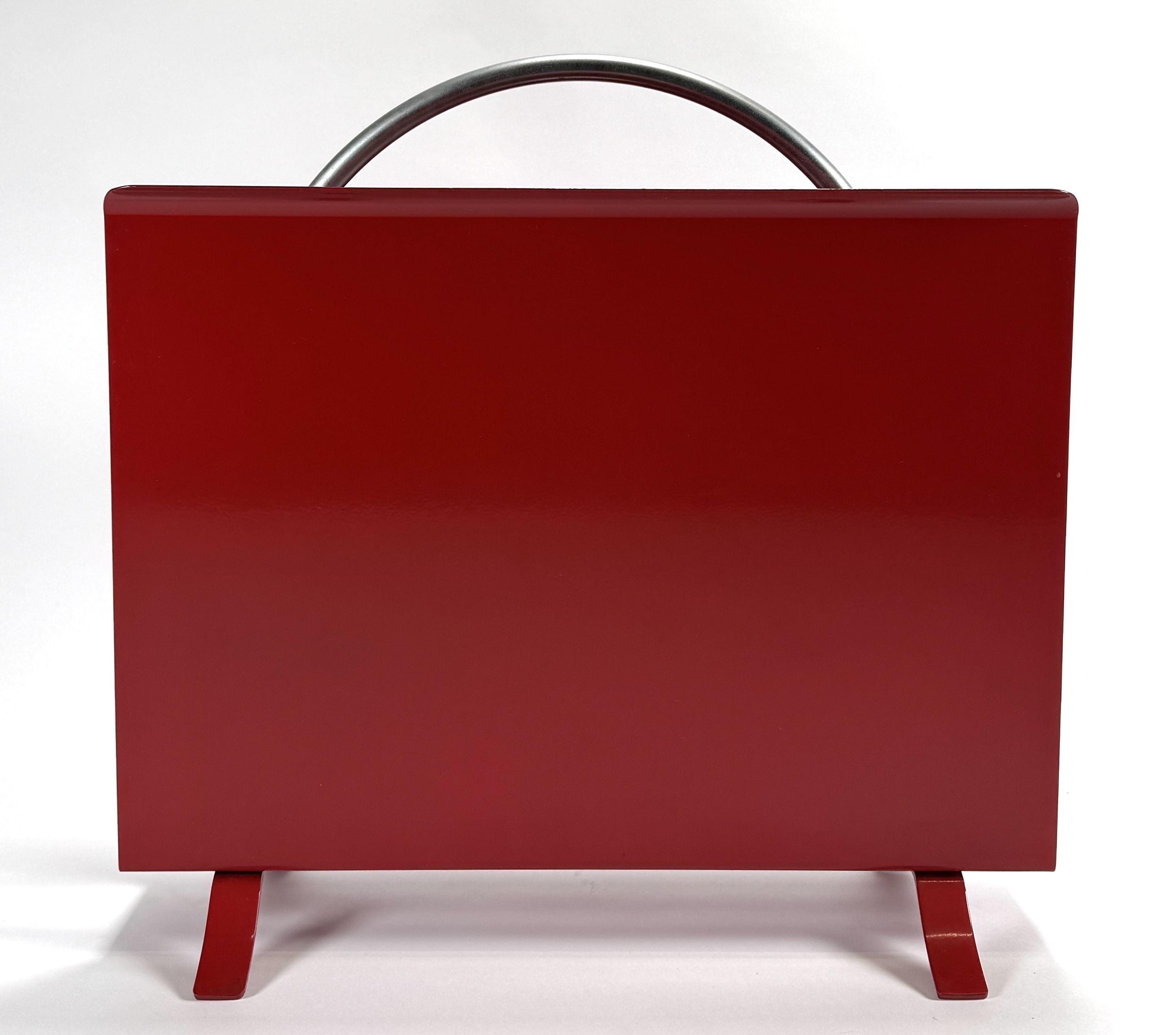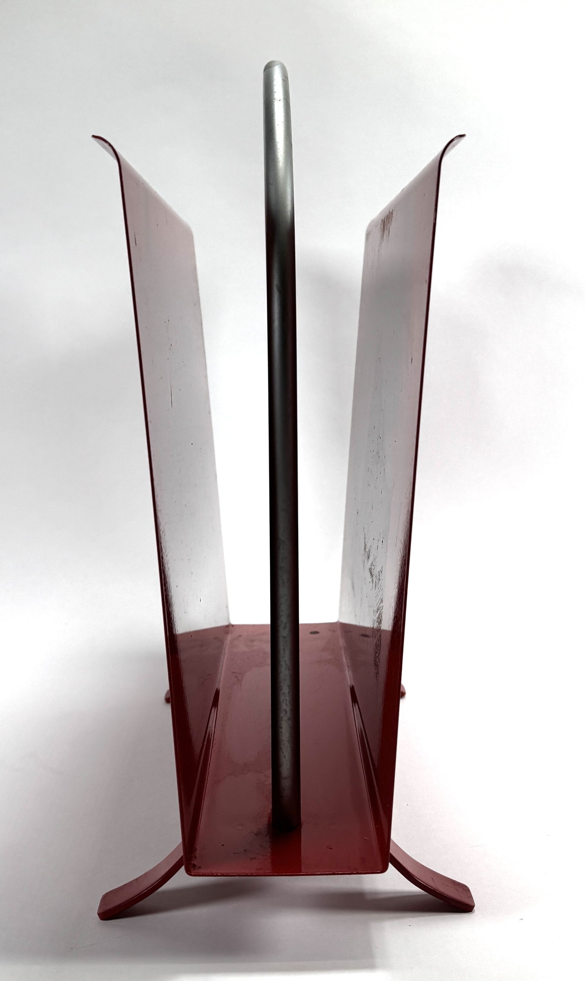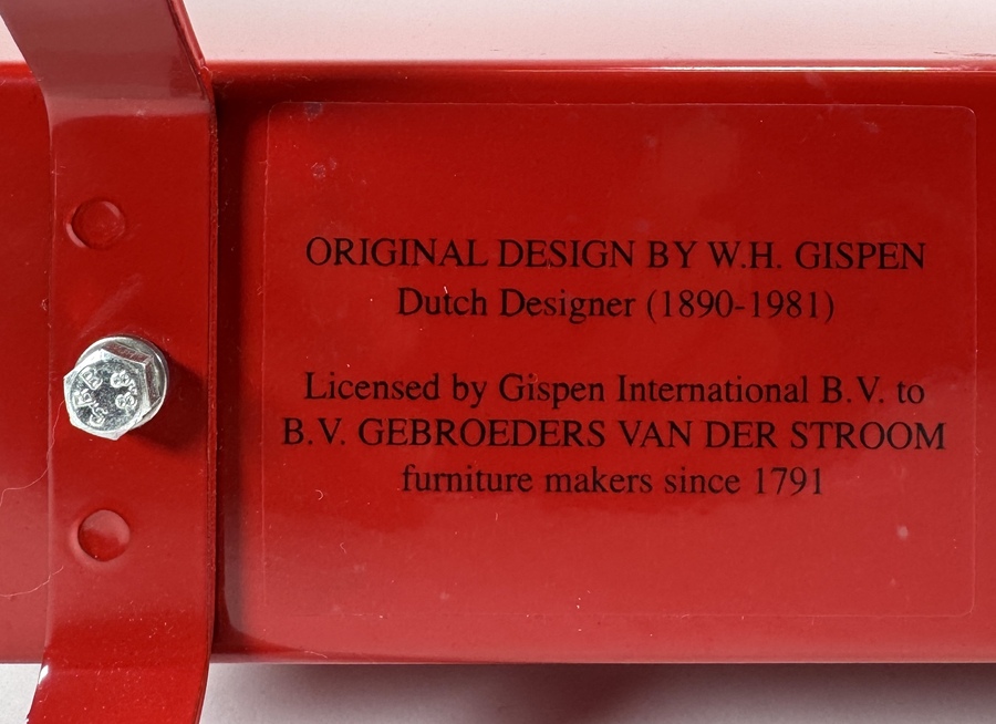 Lectuurbak van Willem Hendrik Gispen (1890–1981), naar een ontwerp uit 1935, vervaardigd uit rood gelakt metaal met gebogen metalen beugel. Kenmerkend zijn de uitlopende zijpanelen, de rechthoekige bak en de vrijstaande aluminiumkleurige draagbeugel. Aan de onderzijde met licentielabel van Gispen International B.V. en Gebroeders van der Stroom. De lectuurbak dateert uit de late 20e eeuw. Zeker zijn van deelname? Plaats vanaf 3 april een schriftelijk bod online! |
