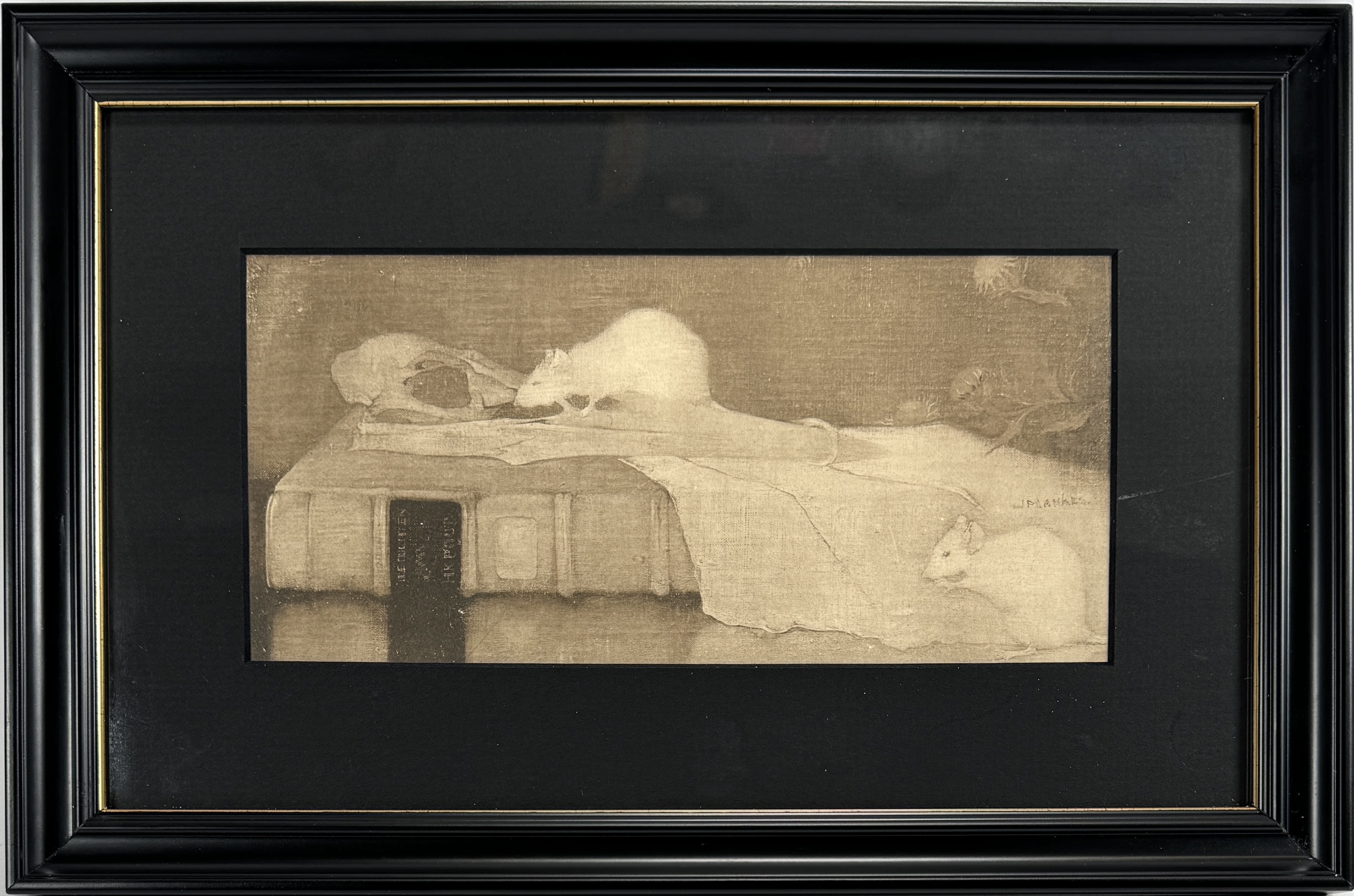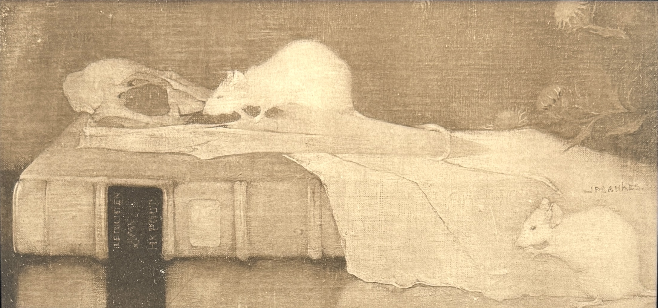 Heliogravure, Jan Mankes - “Witte muizen op perkamenten boekband”, 1923