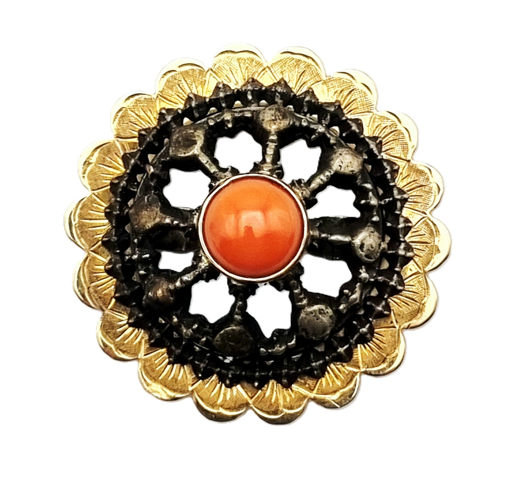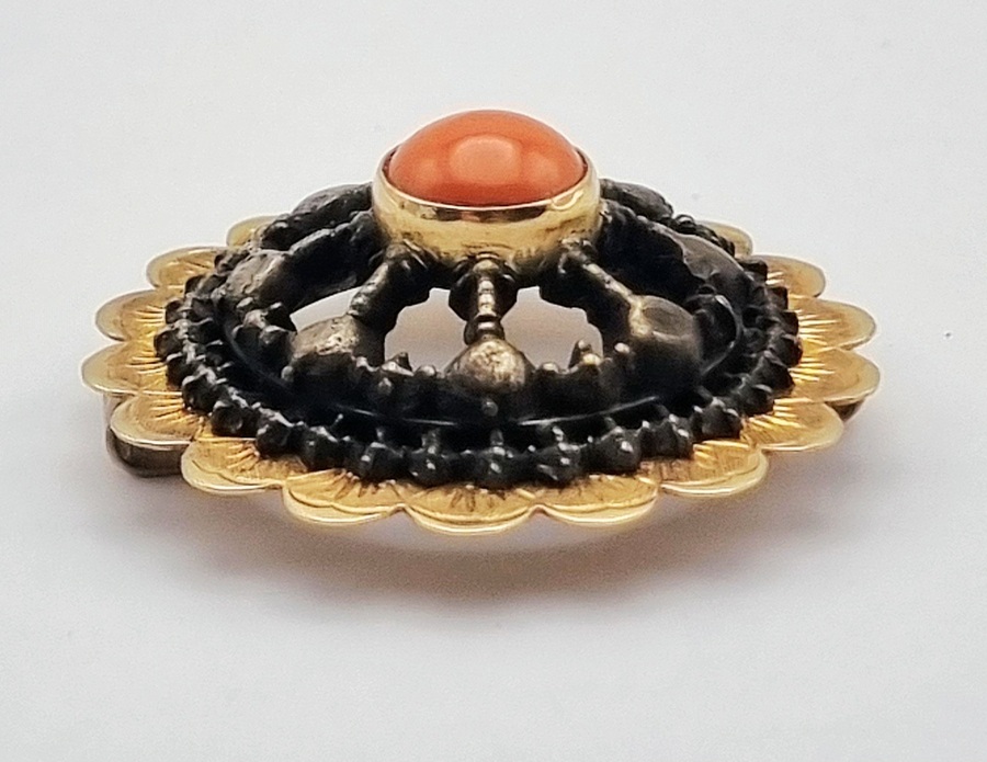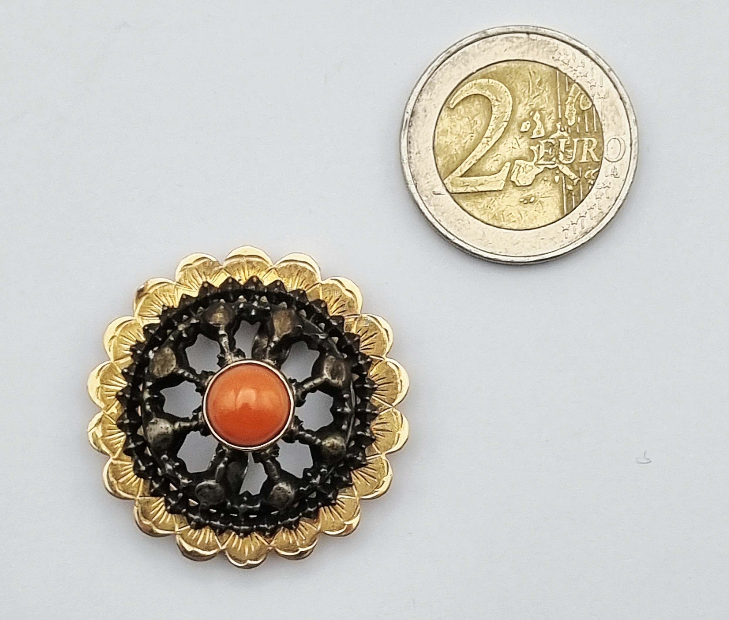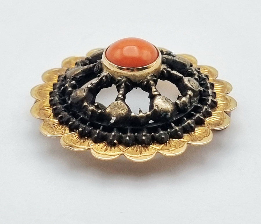 Gouden sieraad met bloedkoraal cabochon, eerste helft 20e eeuw