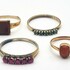 | Afmetingen | Ringmaten groene stenen 18,75, paarse stenen 19,25, jaspis 17,50, bloedkoraal 15 en bruto gewicht 6,73 gram. | |