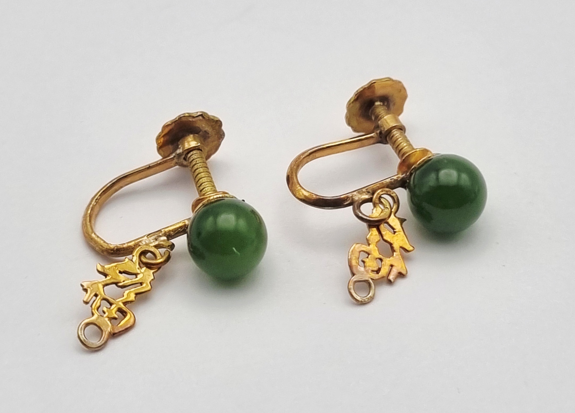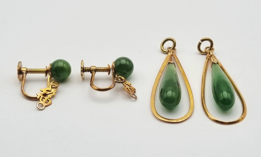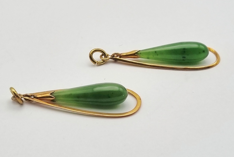 Gouden oorbellen met nefriet, midden 20e eeuw