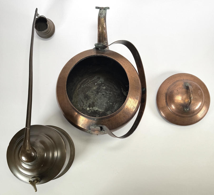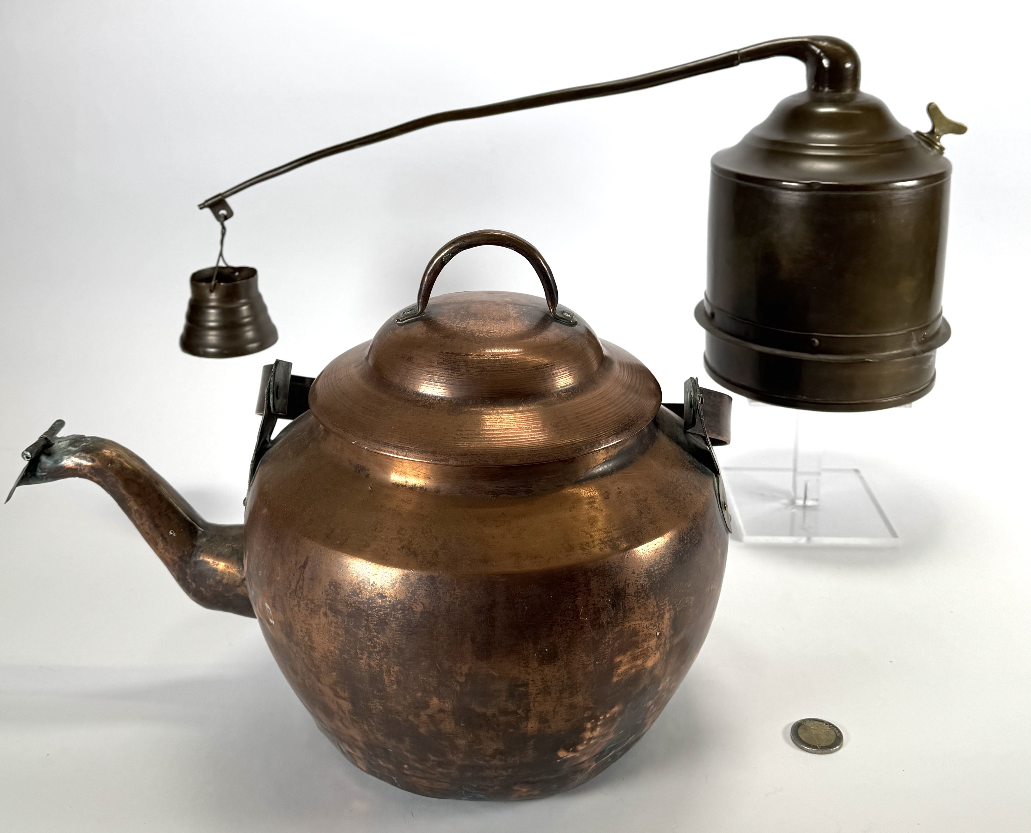Messing kroepketel vervaardigd voor medicinale stoombehandeling en een koperen ketel. Daterend rond 1900 en een Europese herkomst. Geïnteresseerd? Bezoek onze kijkdagen op 10, 11 en 12 april van 11:00 tot 17:00 uur! |