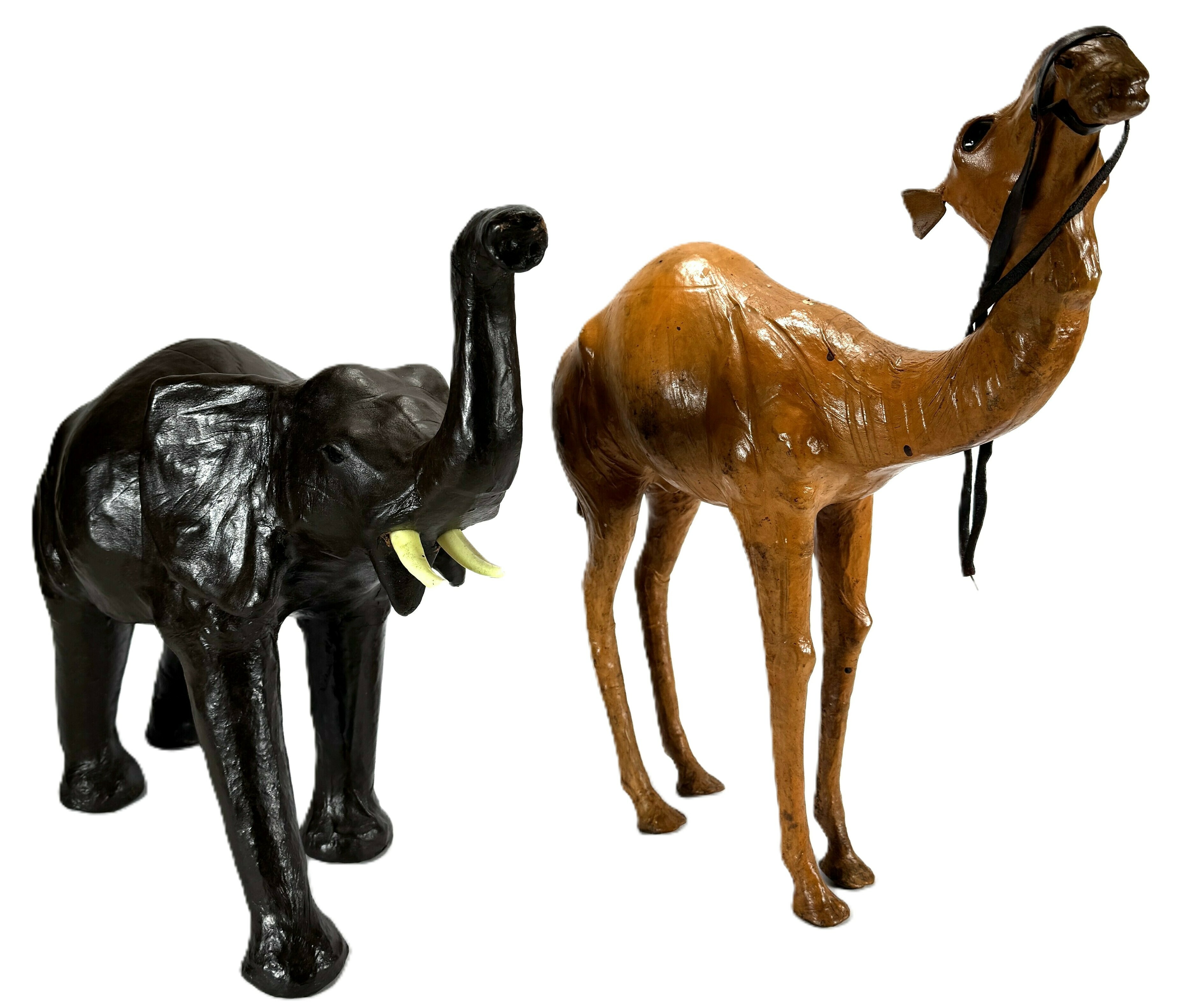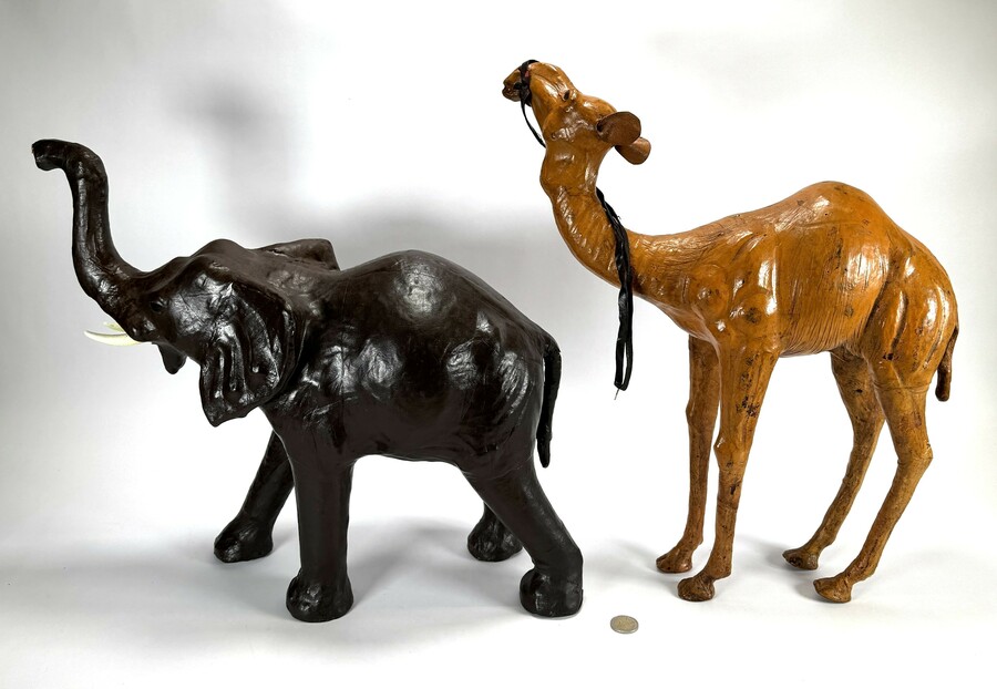 Een olifant en een dromedaris vervaardigd uit papier-maché bekleed met handgevormd leder. De dieren tonen realistische details, datering eind 20e eeuw en een Europese herkomst. De olifant en dromedaris zelf beoordelen? Je bent welkom op onze kijkdagen op 10, 11 en 12 april! |