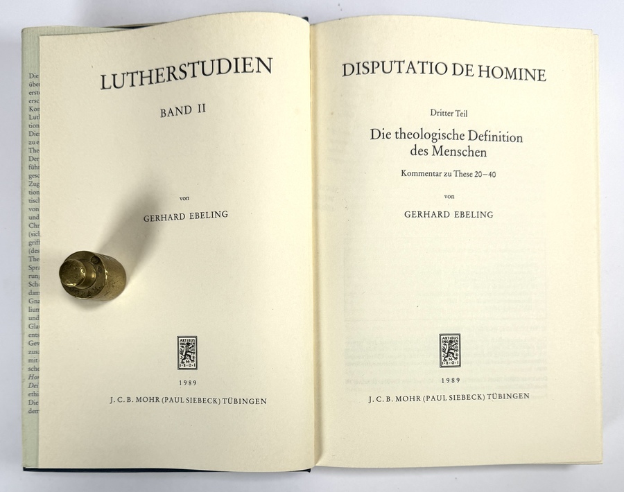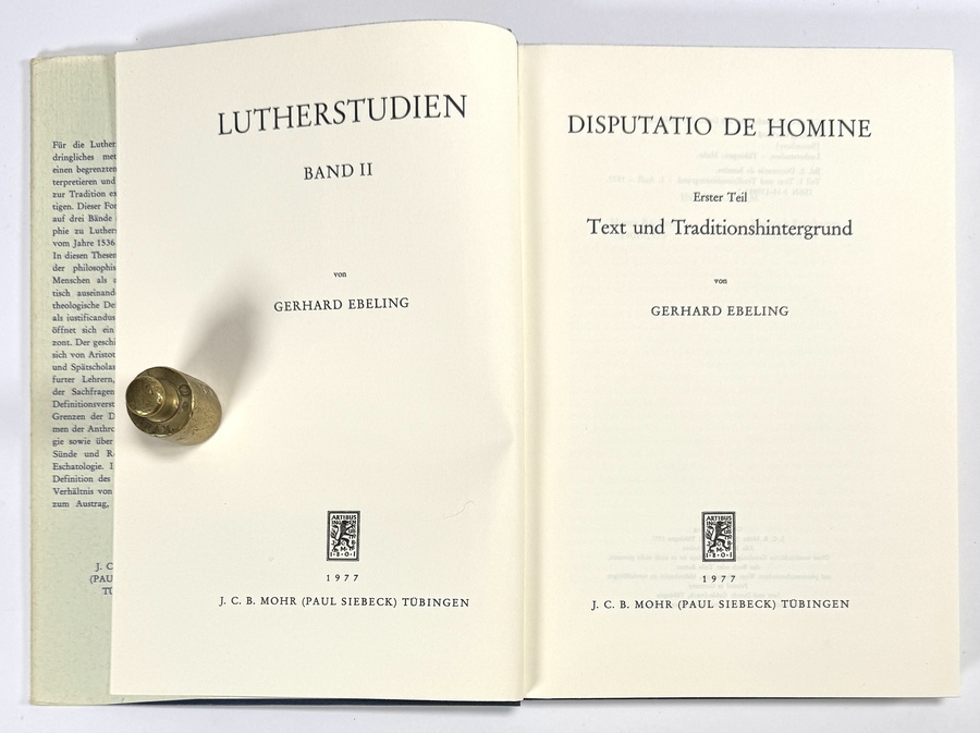 Duitstalige boeken van Gerhard Ebeling (1912–2001), vervaardigd uit papier, karton en linnen met boekdruk. De reeks omvat Lutherstudien I–III en Disputatio de Homine I–III, aangevuld met studies over Martin Luther en Thomas van Aquino. De boeken dateren uit circa 1971–1989. Geïnteresseerd? Bezoek onze kijkdagen op 10, 11 en 12 april van 11:00 tot 17:00 uur! |