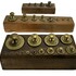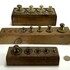 Messing gewichten in houten blokken, ca. 1900