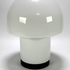Mushroom tafellamp van Glashütte Limburg uit de Space Age periode, vervaardigd uit wit melkglas met een zwart metalen voetring. De paddenstoelvormige armatuur toont een naadloze overgang tussen de cilindrische voet en de halfronde kap. De tafellamp dateert uit circa 1975 en heeft een Duitse herkomst. Registreer nu en bied eenvoudig online mee op deze lamp! |