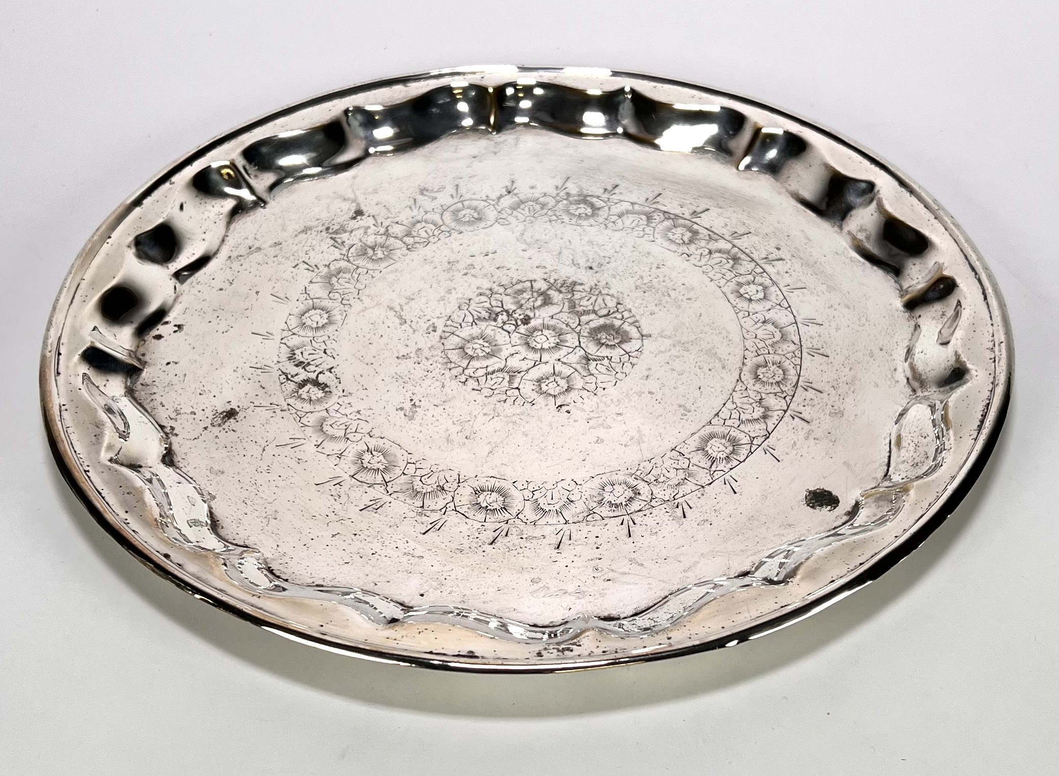 Servies van verzilverd metaal in neo-empire stijl, vervaardigd met giet- en drijftechnieken. De set omvat een koffiepot, theepot, melkkan en suikerpot op een rond dienblad met gegraveerd floraal decor. De onderdelen tonen geprofileerde banden en rusten op pootjes. Het servies is aan de onderzijde gemerkt met E.P.N.S. en dateert uit de eerste helft van de 20e eeuw. Wil je direct deelnemen? Plaats vanaf 3 april alvast een schriftelijk bod via onze website! |