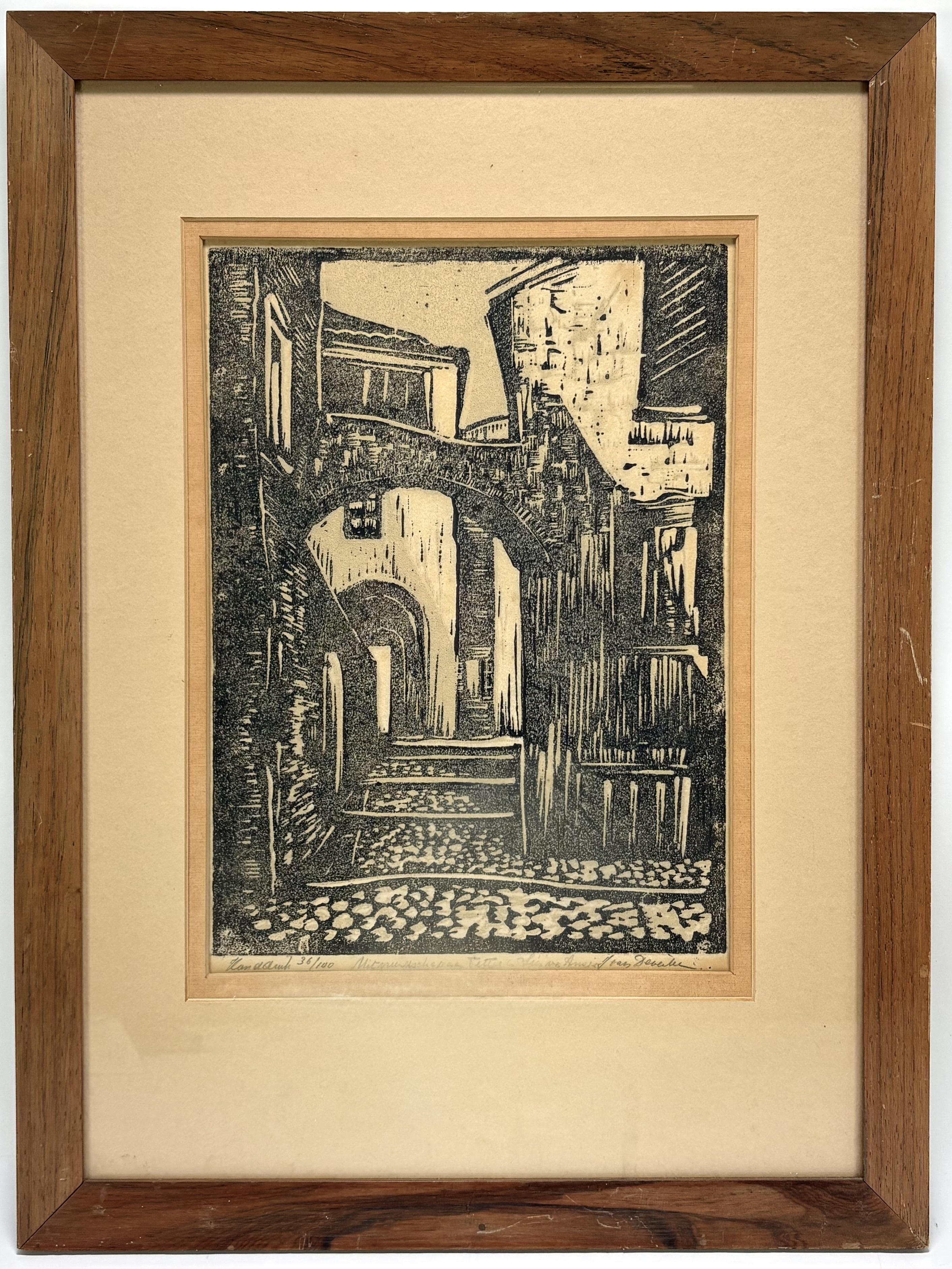 Houtsnede - J. van Deventer, straatgezicht, ca. 1960