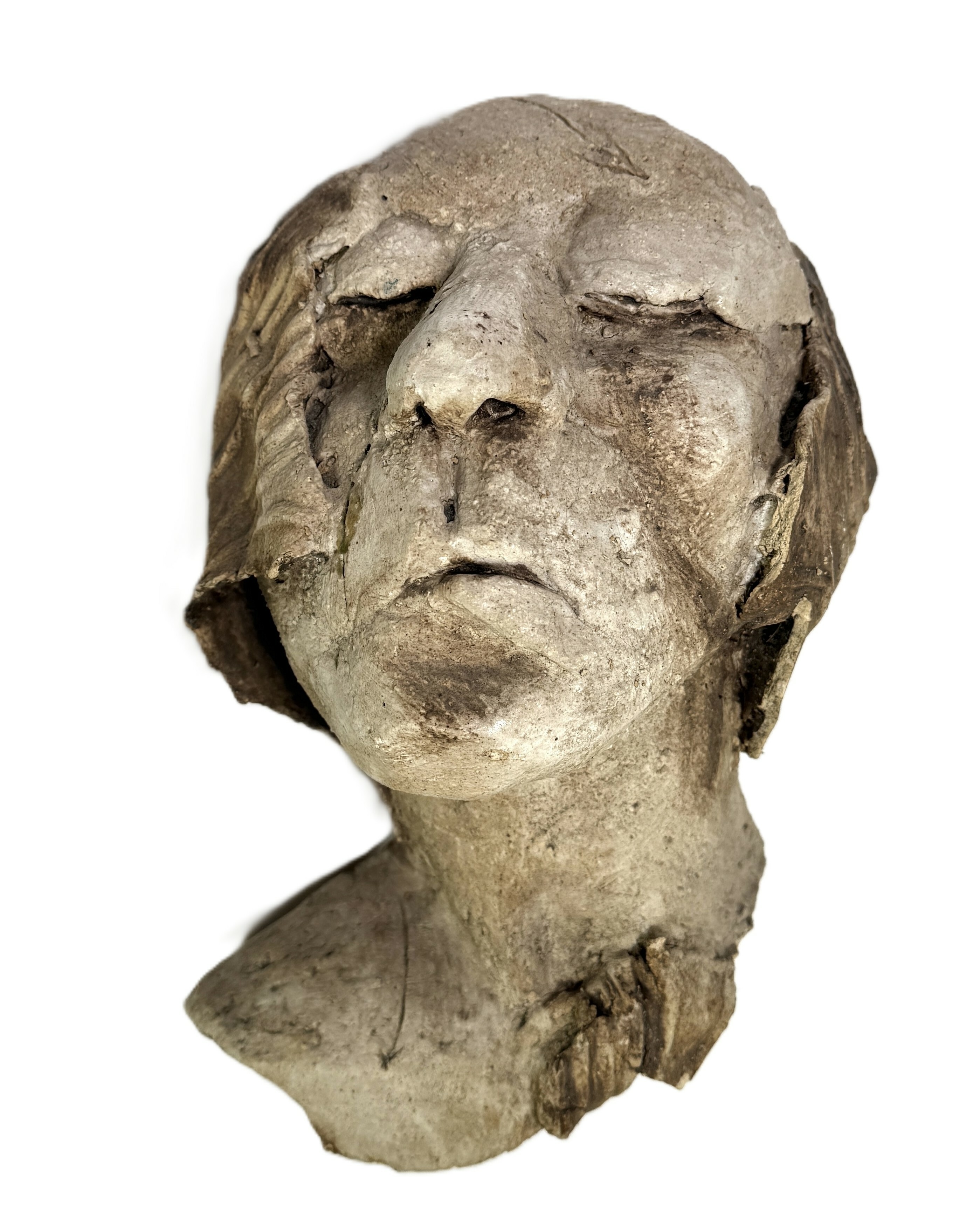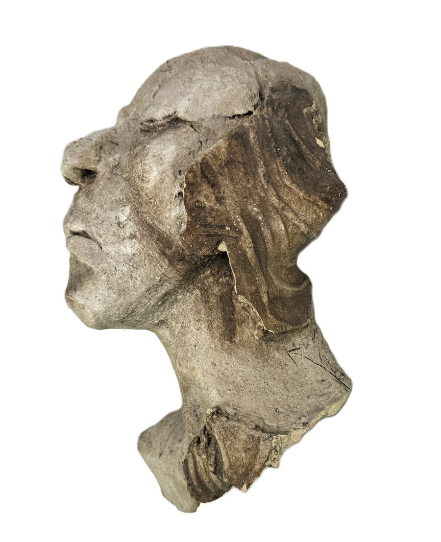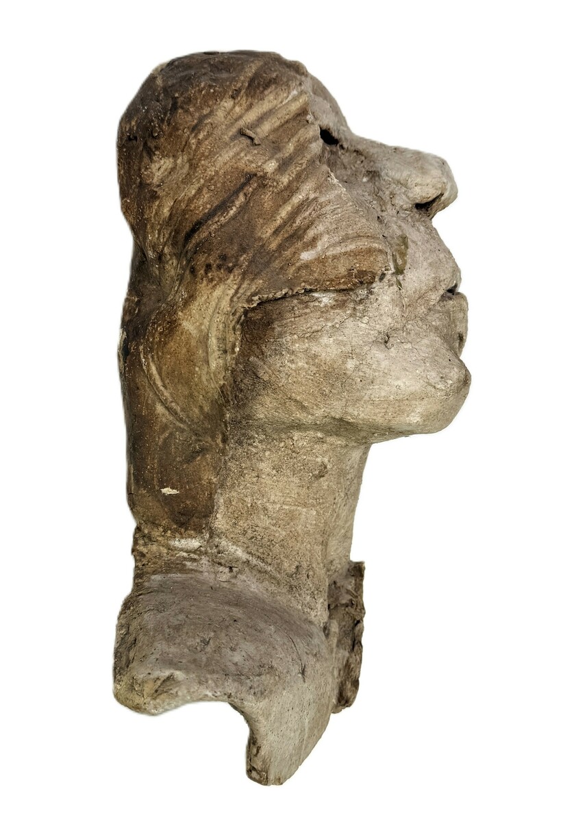Beeld in realistische stijl, vervaardigd uit gepatineerd gips door middel van giettechniek. Het werk toont een liggend menselijk gelaat met gesloten ogen. Het beeld dateert uit de tweede helft van de 20e eeuw en heeft een Europese herkomst. Kom langs tijdens de kijkdagen (10 t/m 12 april) en ontdek het beeld zelf! |