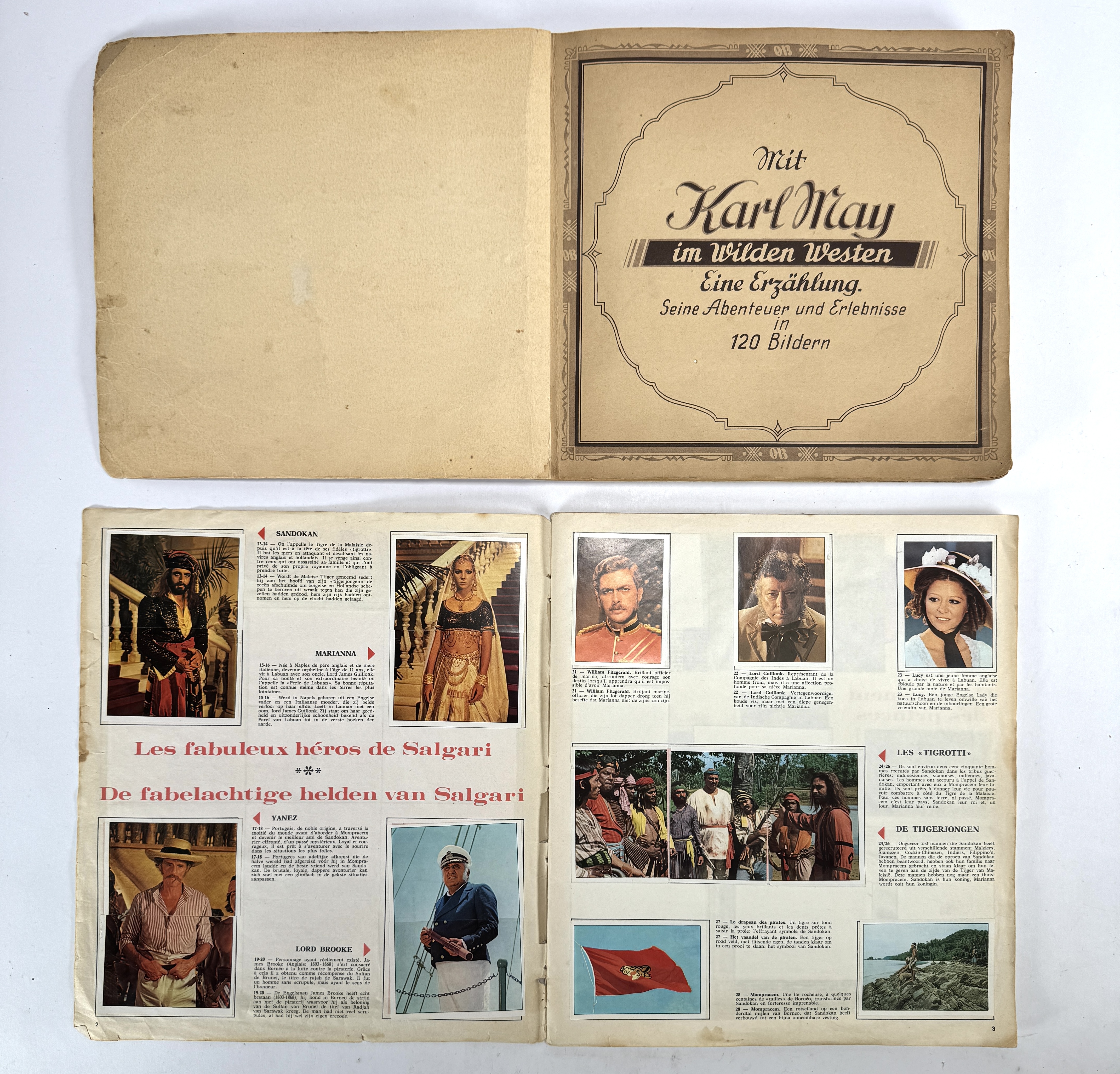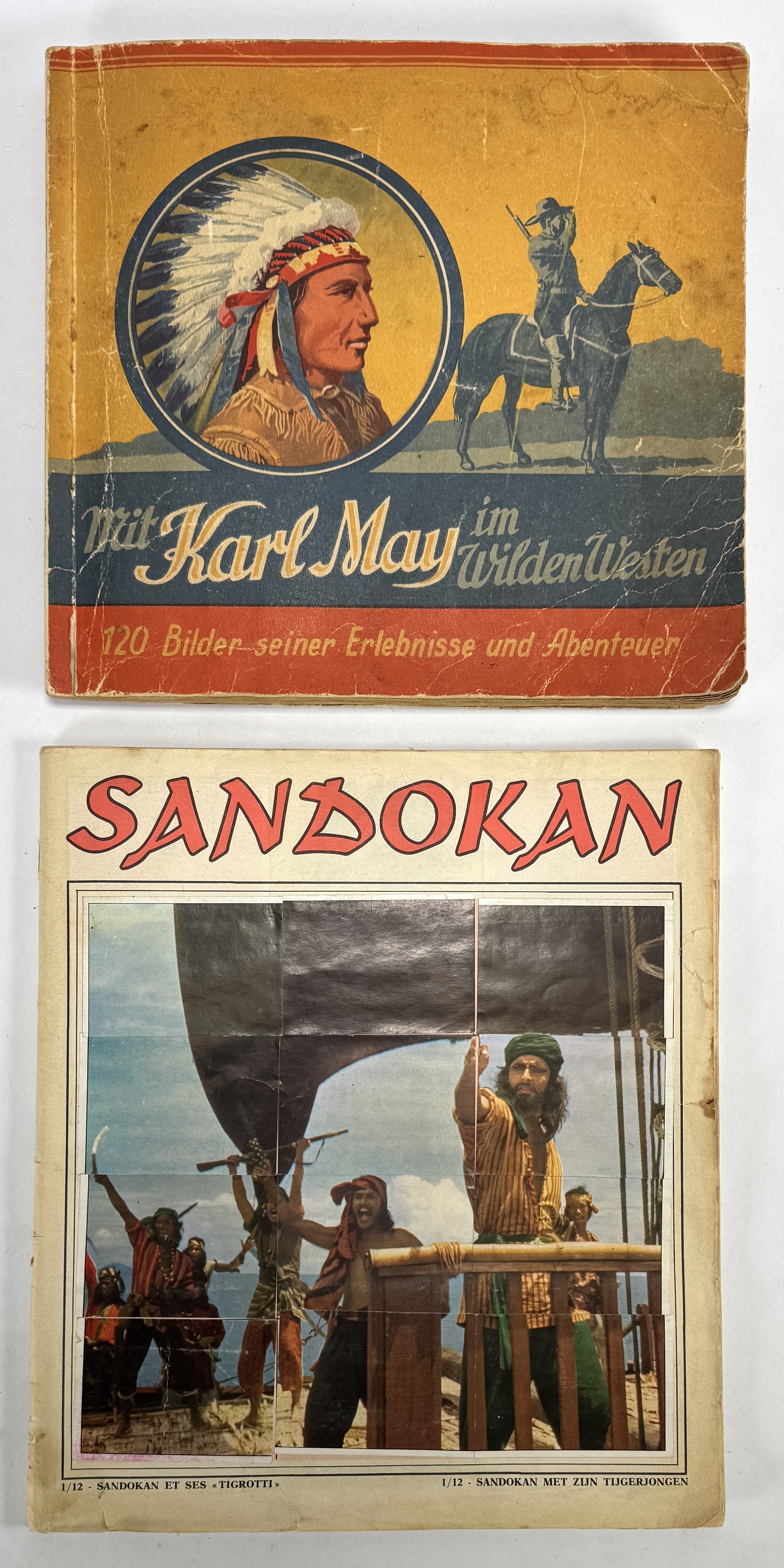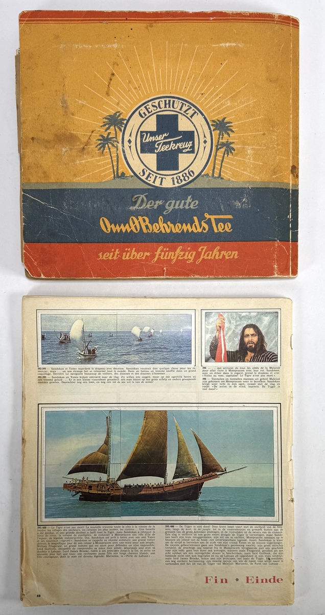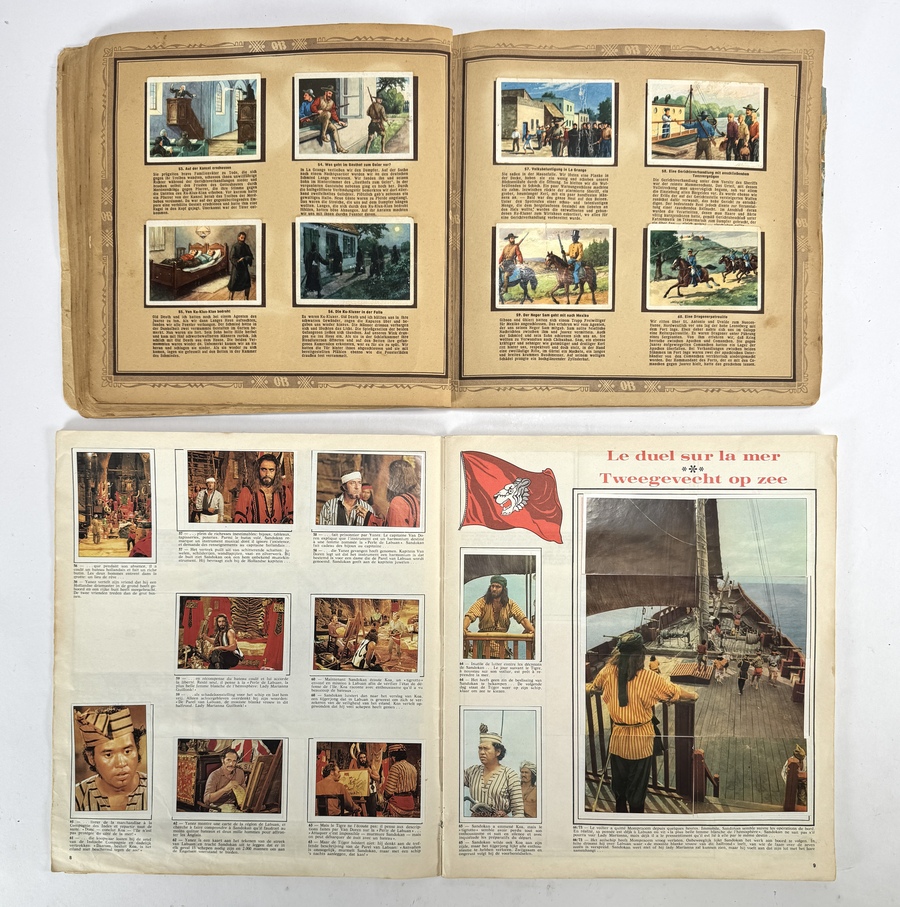 Plaatjesboeken van Onno Behrends Tee en Sandokan, vervaardigd uit papier en karton met offsetdruk. Bestaand uit het album “Mit Karl May im Wilden Westen” en het Sandokan-album uit 1976 over “De Tijger van Maleisië”. Datering circa 1960–1976 en een Europese herkomst. Geïnteresseerd? Bezoek onze kijkdagen op 10, 11 en 12 april van 11:00 tot 17:00 uur! |