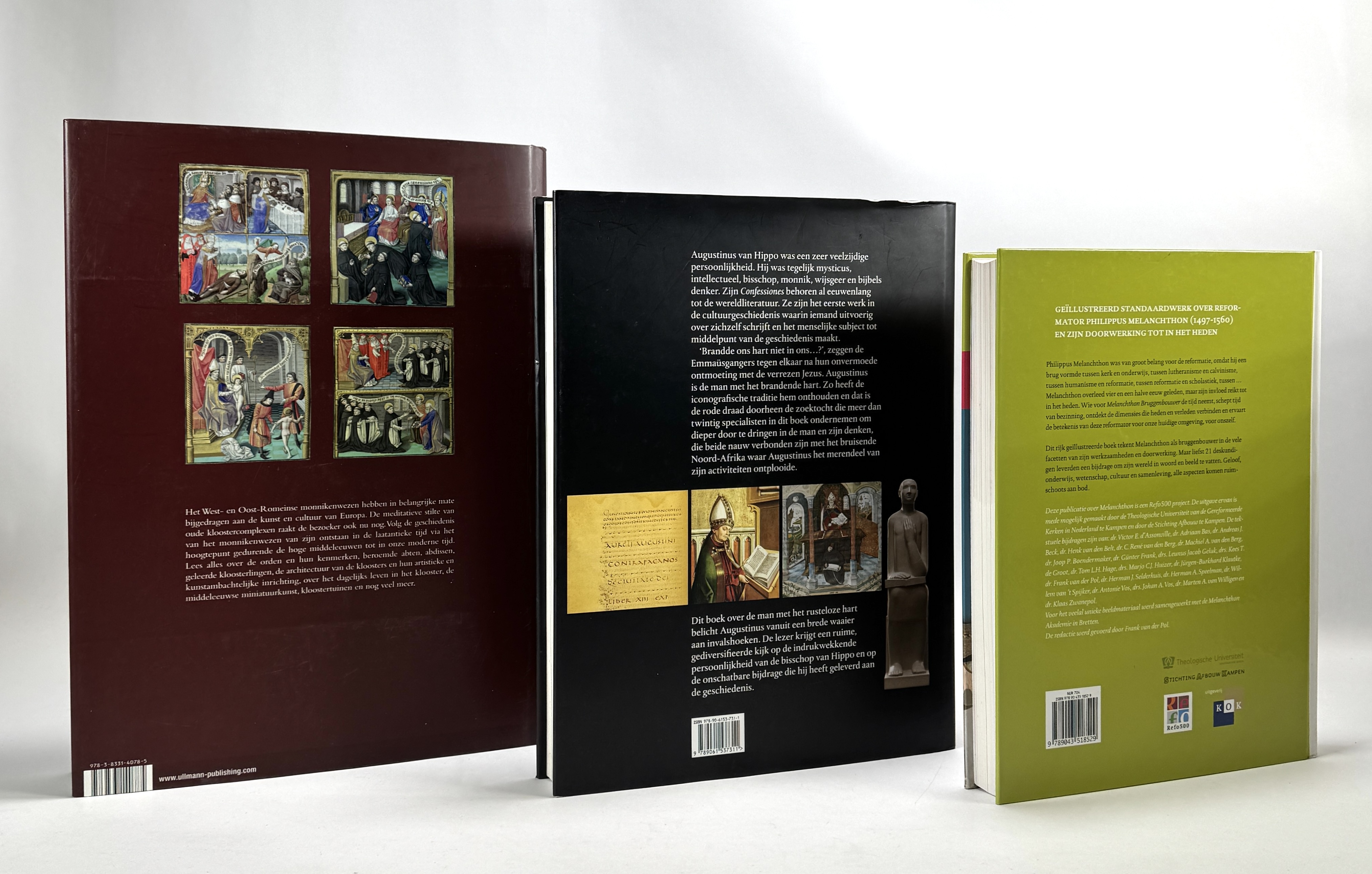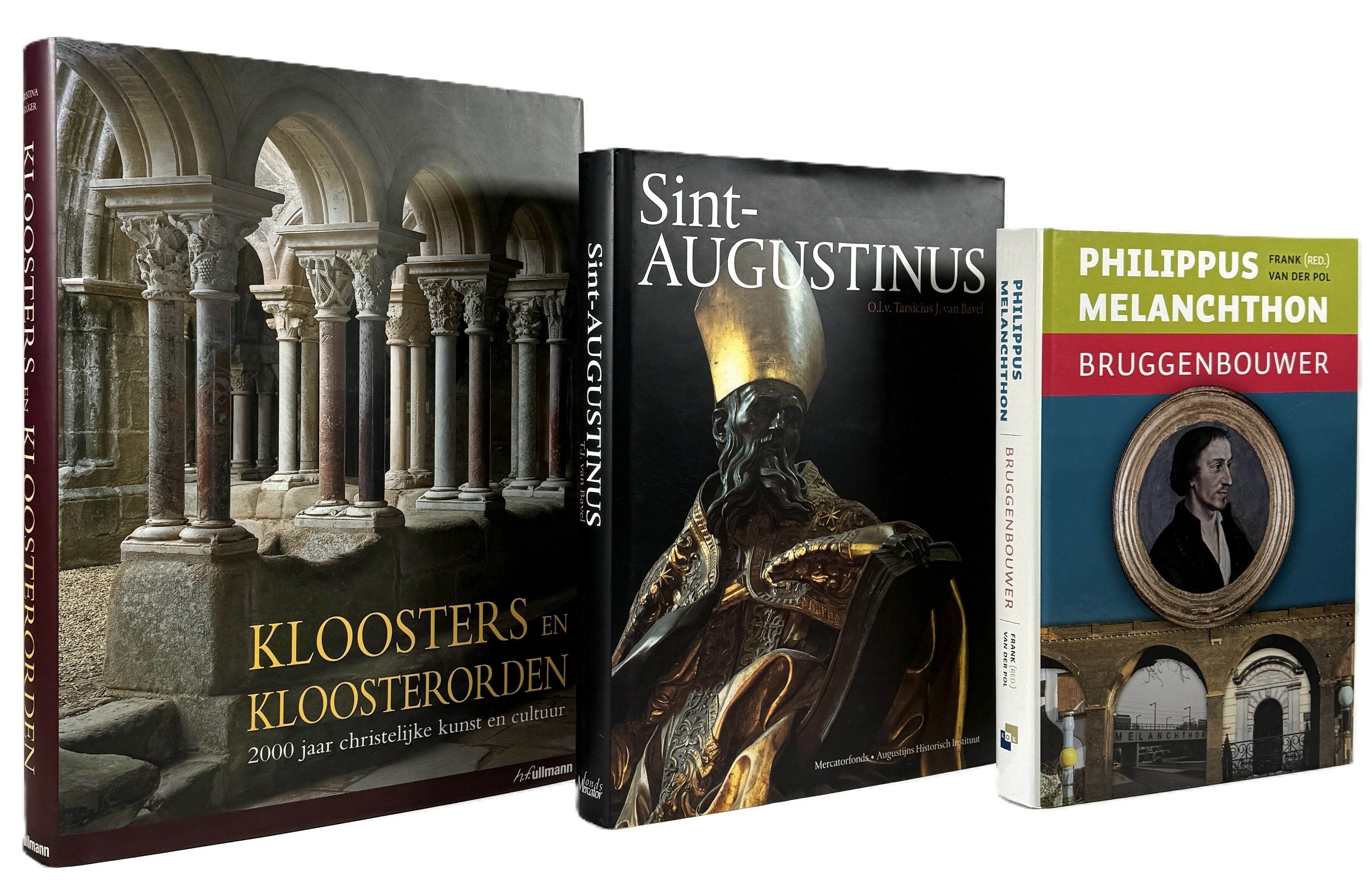 Theologische boeken van Kristina Krüger, Tarcisius J. van Bavel en Frank van der Pol, vervaardigd uit bedrukt papier met kartonnen banden en offsetdruk. Het betreft drie Nederlandstalige, rijk geïllustreerde uitgaven over kloosterwezen, Augustinus en Philippus Melanchthon. De boeken dateren uit 2007–2011 en zijn uitgegeven door H.F. Ullmann, Mercatorfonds en Kok Utrecht. De boeken zelf beoordelen? Je bent welkom op onze kijkdagen op 10, 11 en 12 april! |
