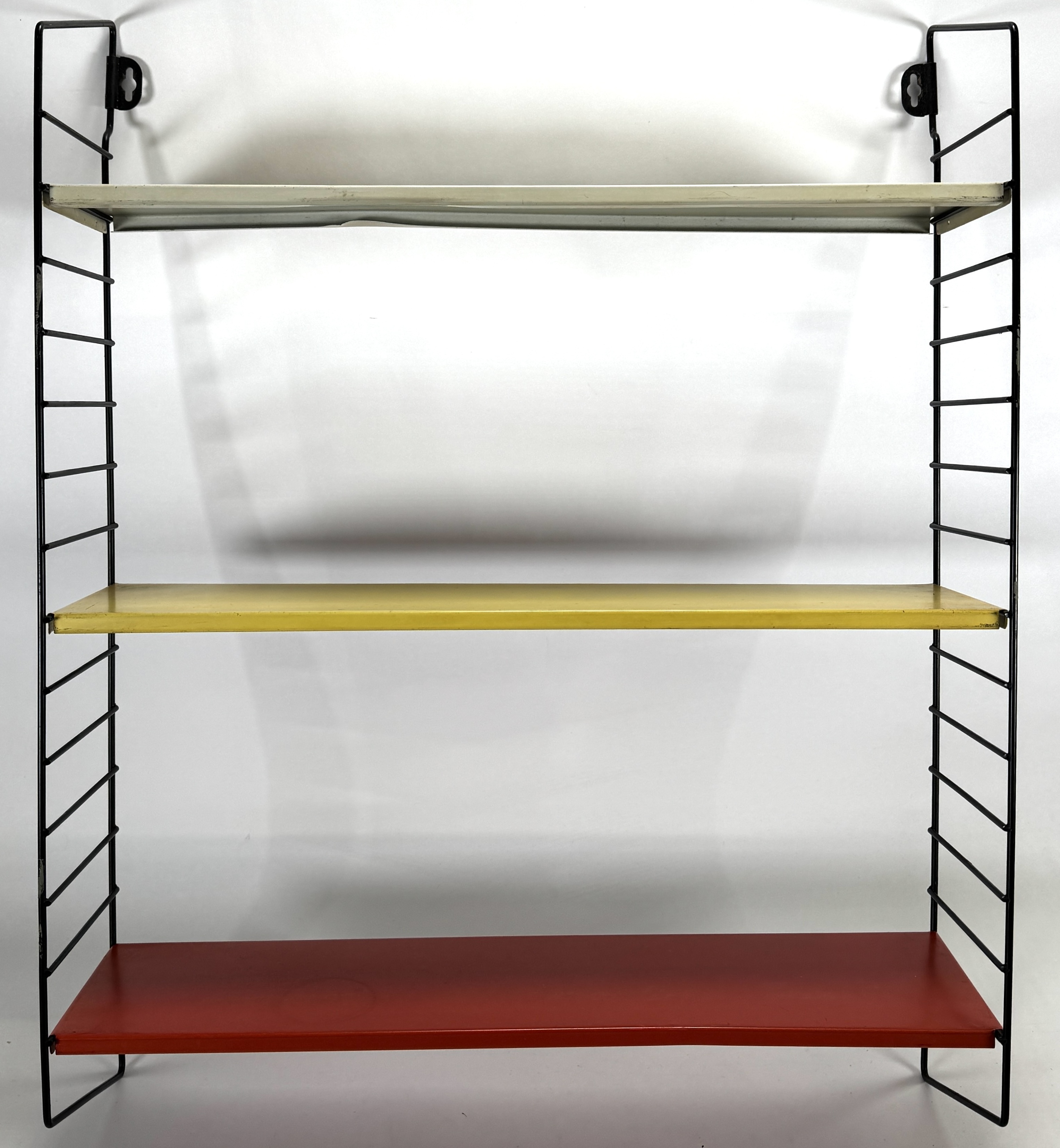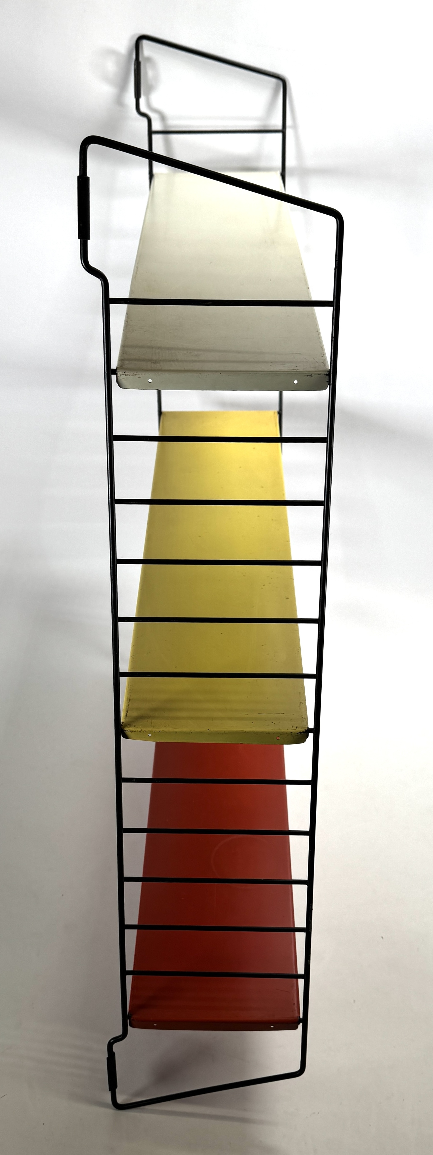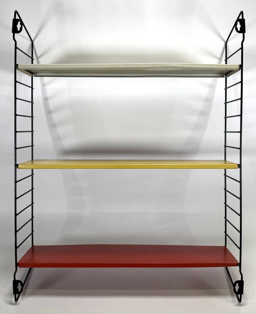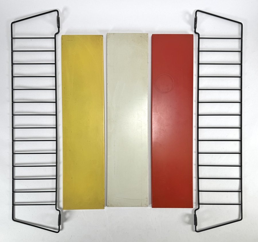 Tomado wandrek ontworpen door Ariaan Dekker uit de Mid-century modern periode, vervaardigd uit zwart draadstaal en meerkleurig plaatstaal. Het modulaire ontwerp bevat drie metalen planken in rood, geel en crème, dateert uit circa 1960 en heeft een Nederlandse herkomst. Eerst het wandrek zien voordat je biedt? Bezoek onze kijkdagen op 10, 11 en 12 april! |
