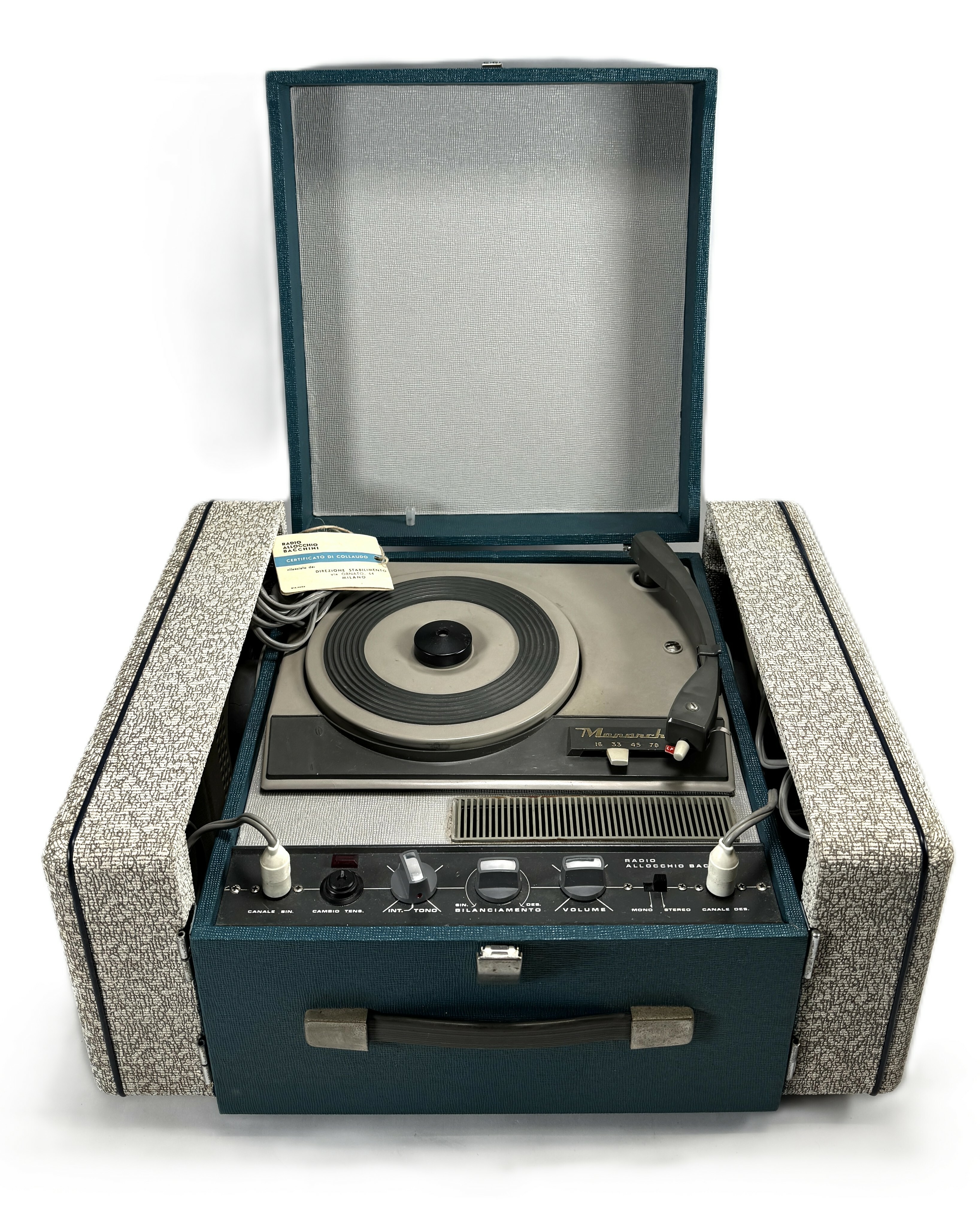 | Kavelnummer en naam | 1107. Kofferplatenspeler, Allocchio Bacchini - Italië, midden 20e eeuw | |
