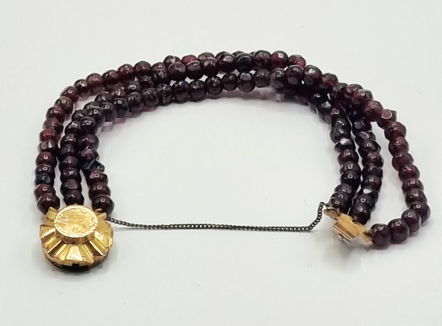 Granaat armband met gouden sluiting, eerste kwart 20e eeuw