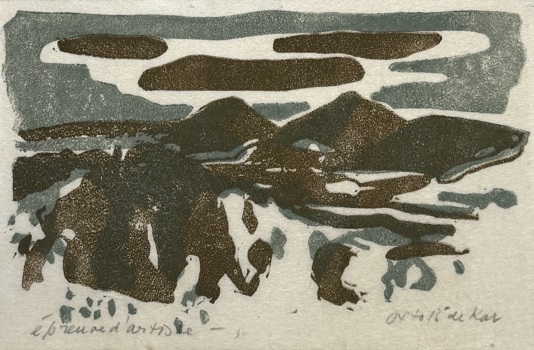 Zeefdruk, Otto B. de Kat – abstract landschap, ca. 1975