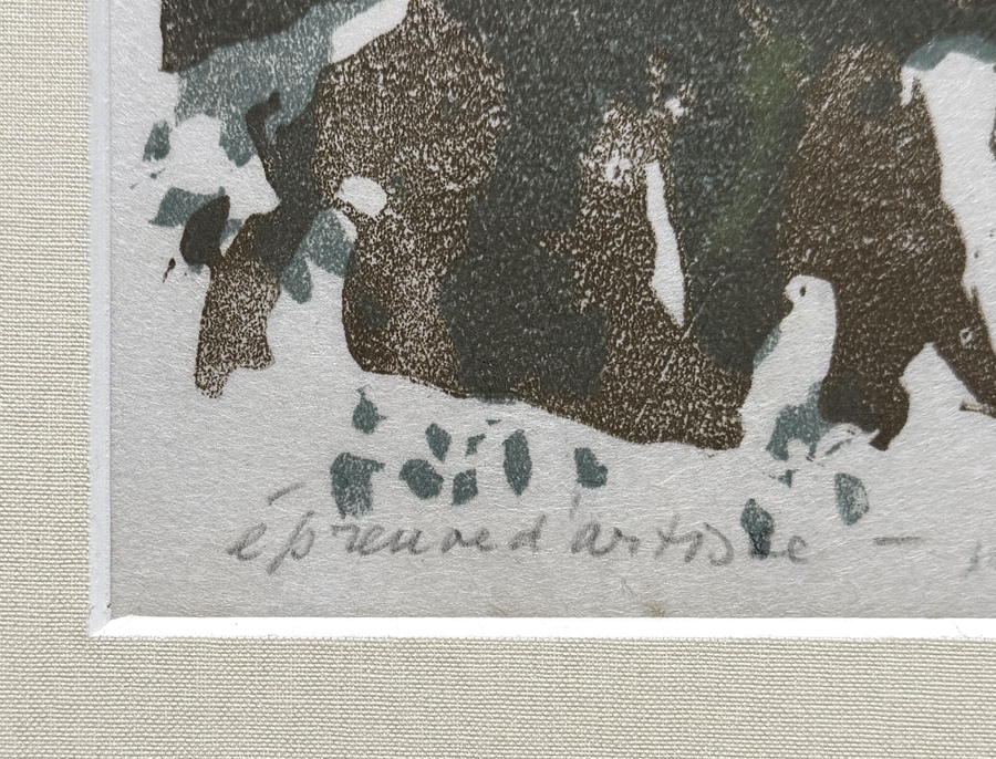 Zeefdruk door Otto B. de Kat (1907–1995), uitgevoerd in meerkleurige zeefdruktechniek op papier, toont een geabstraheerd landschap in modernistische stijl. De compositie bevat organische vormen in gedempte aardtinten en grijstinten met zwevende elementen. Linksonder geannoteerd als épreuve d'artiste en rechtsonder met potlood gesigneerd. De zeefdruk dateert uit circa 1975 en heeft een Nederlandse herkomst. Geplaatst in een donkerhouten lijst voorzien van een lichtgekleurd passe-partout. Geïnteresseerd? Bezoek onze kijkdagen op 10, 11 en 12 april van 11:00 tot 17:00 uur! |