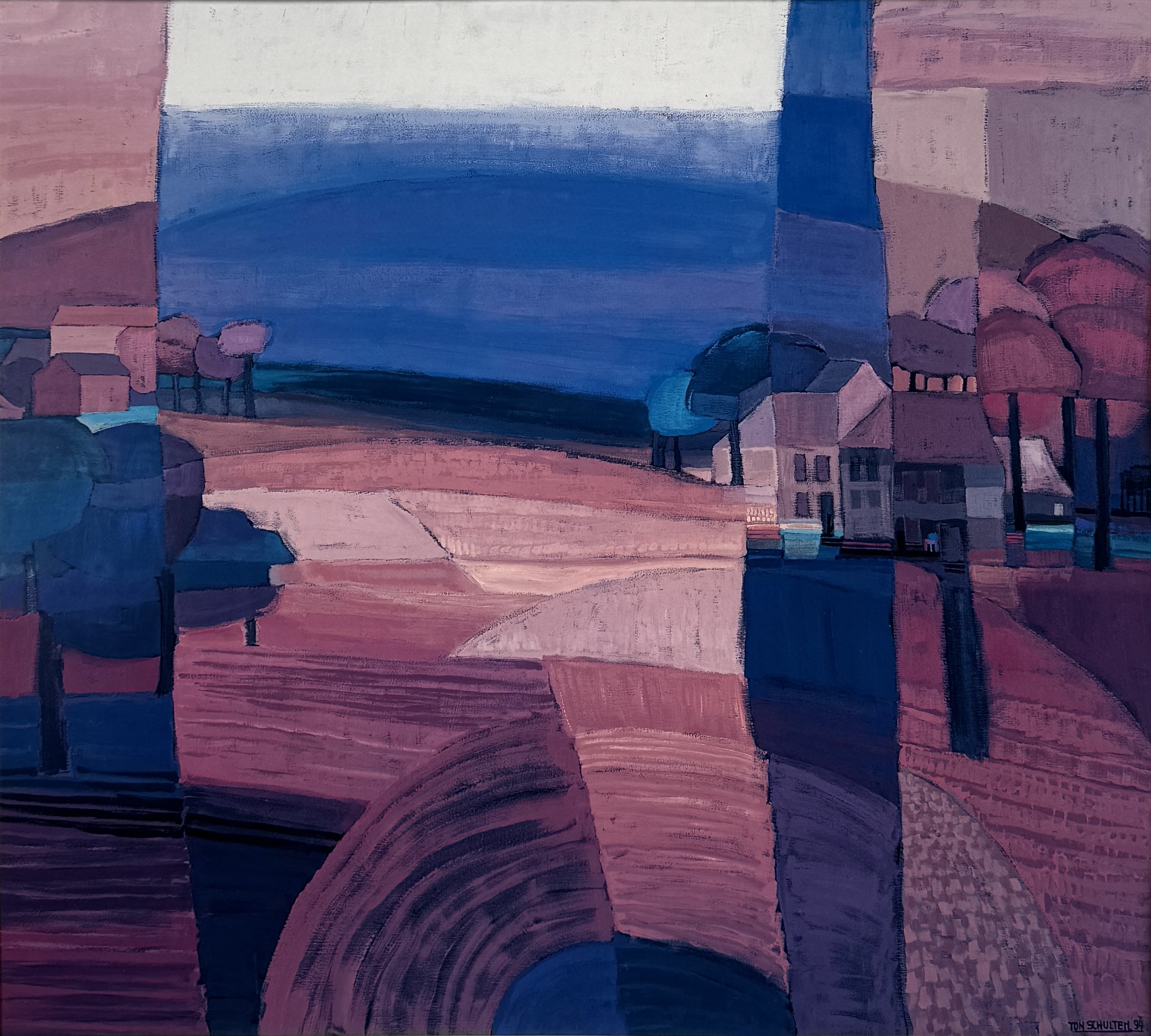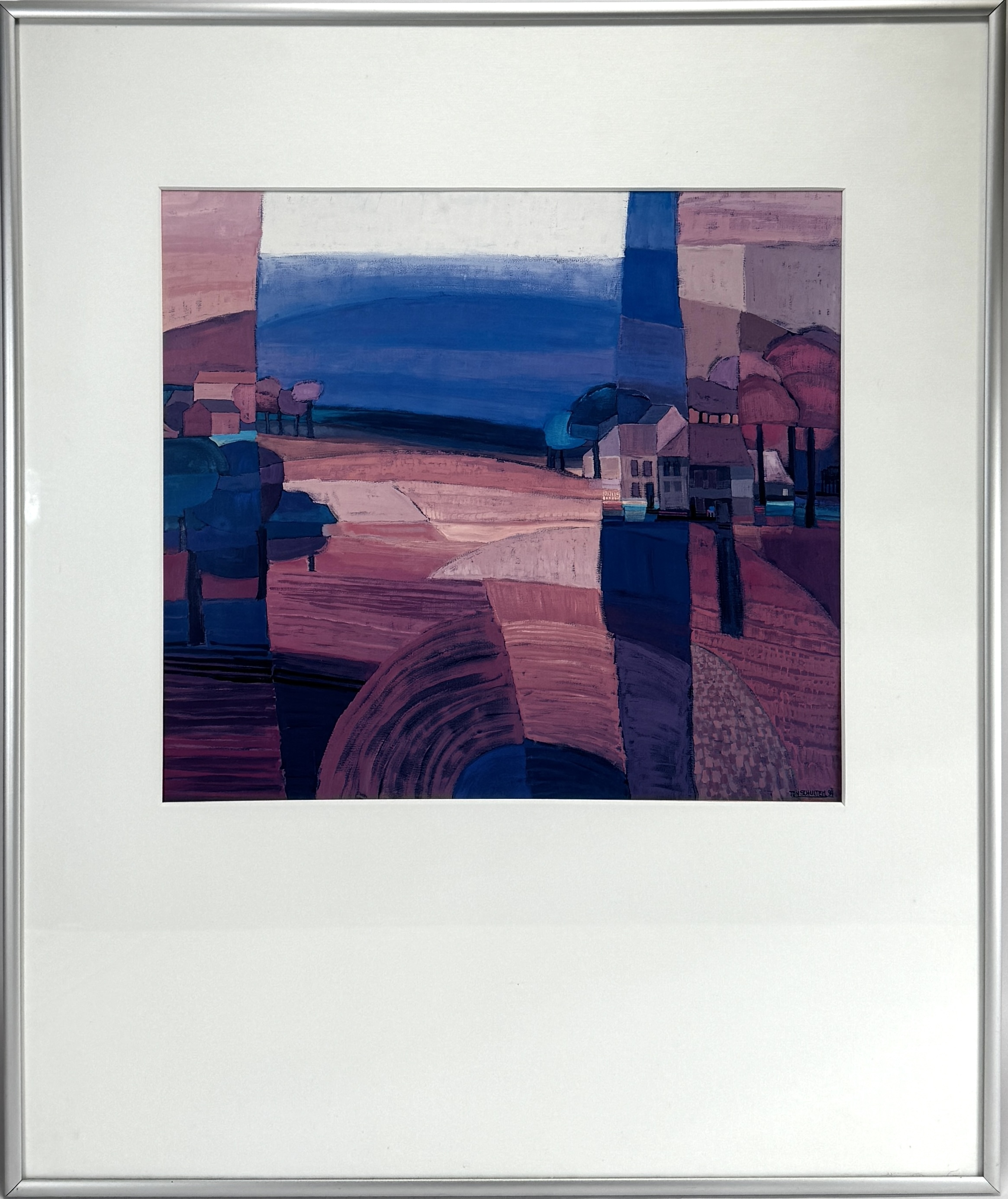 Zeefdruk, Ton Schulten - abstract dorpsgezicht, 1994