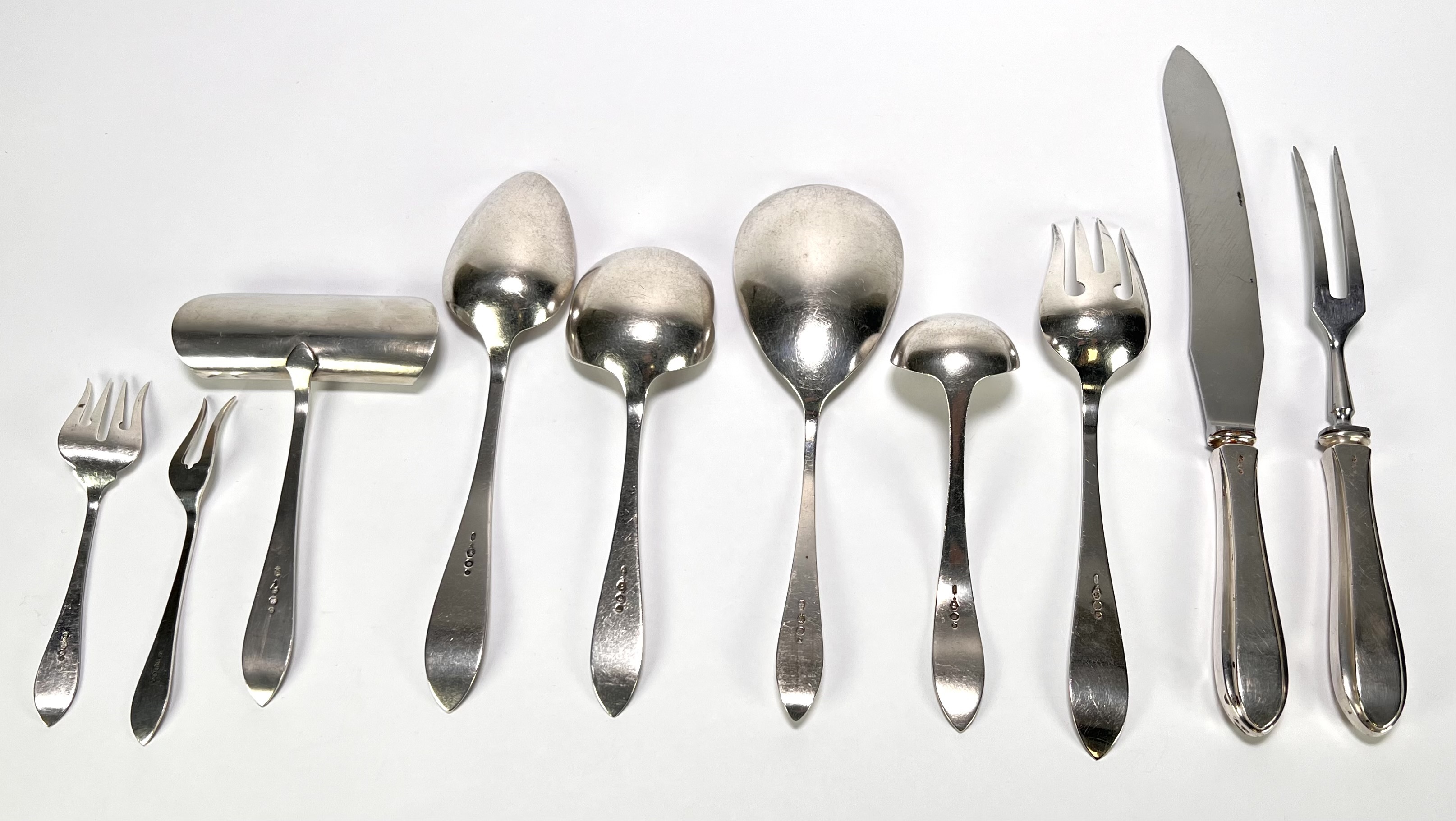 | Afmetingen | Max. lengte 33 cm, gewicht zilver 1838 gram en gewicht bestek met rvs/plastic 994 gram. | |
