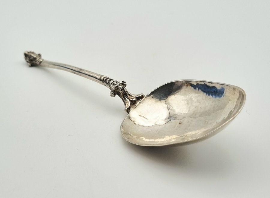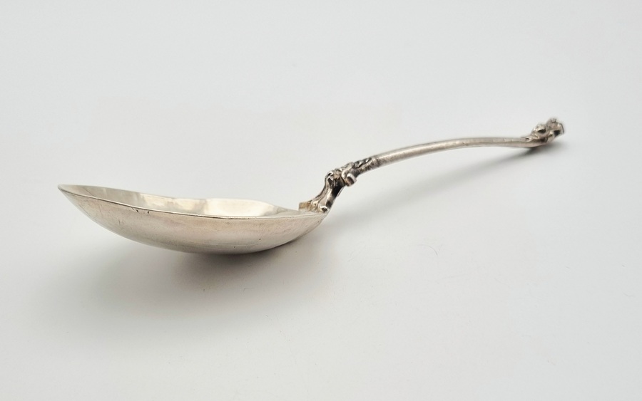 Zilveren lepel uit de barok periode, circa 1700, vervaardigd uit Nederlands zilver. De lepel toont een gegoten steel met een figuurlijke bekroning en een ronde bak met karakteristieke aanhechting. Geïnteresseerd? Bezoek onze kijkdagen op 10, 11 en 12 april van 11:00 tot 17:00 uur! |