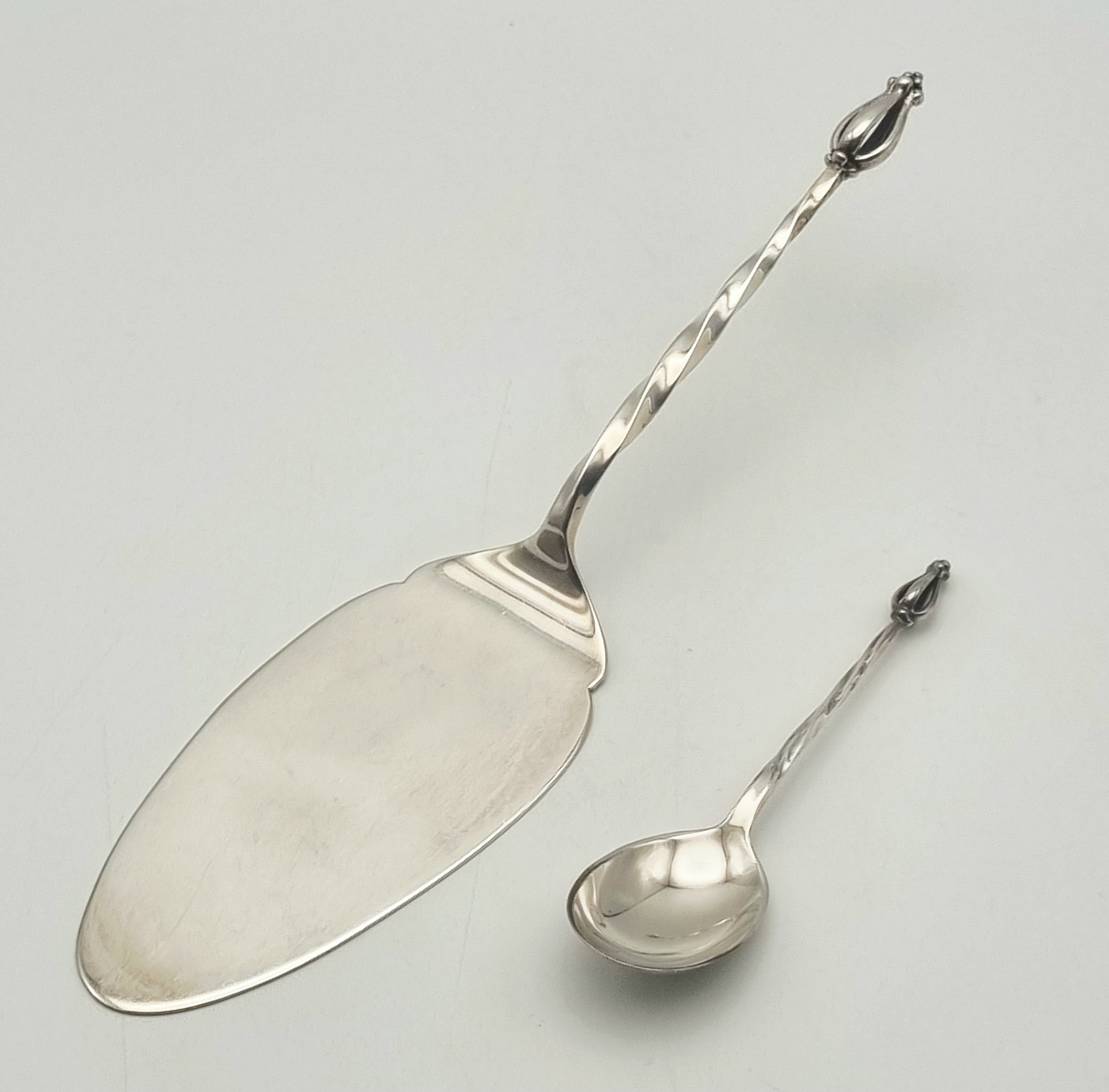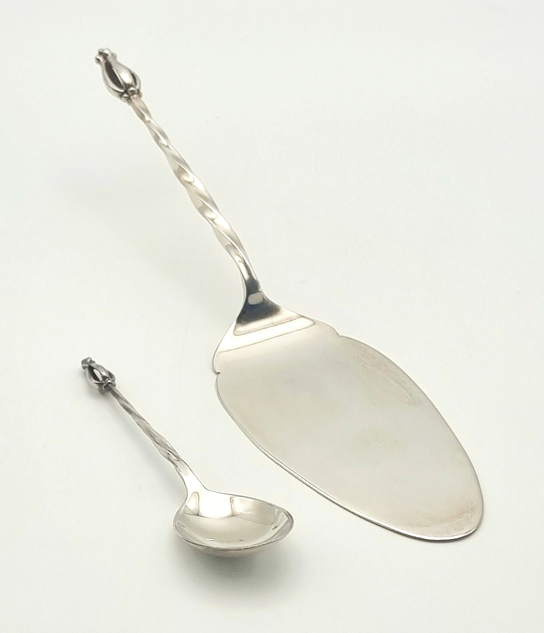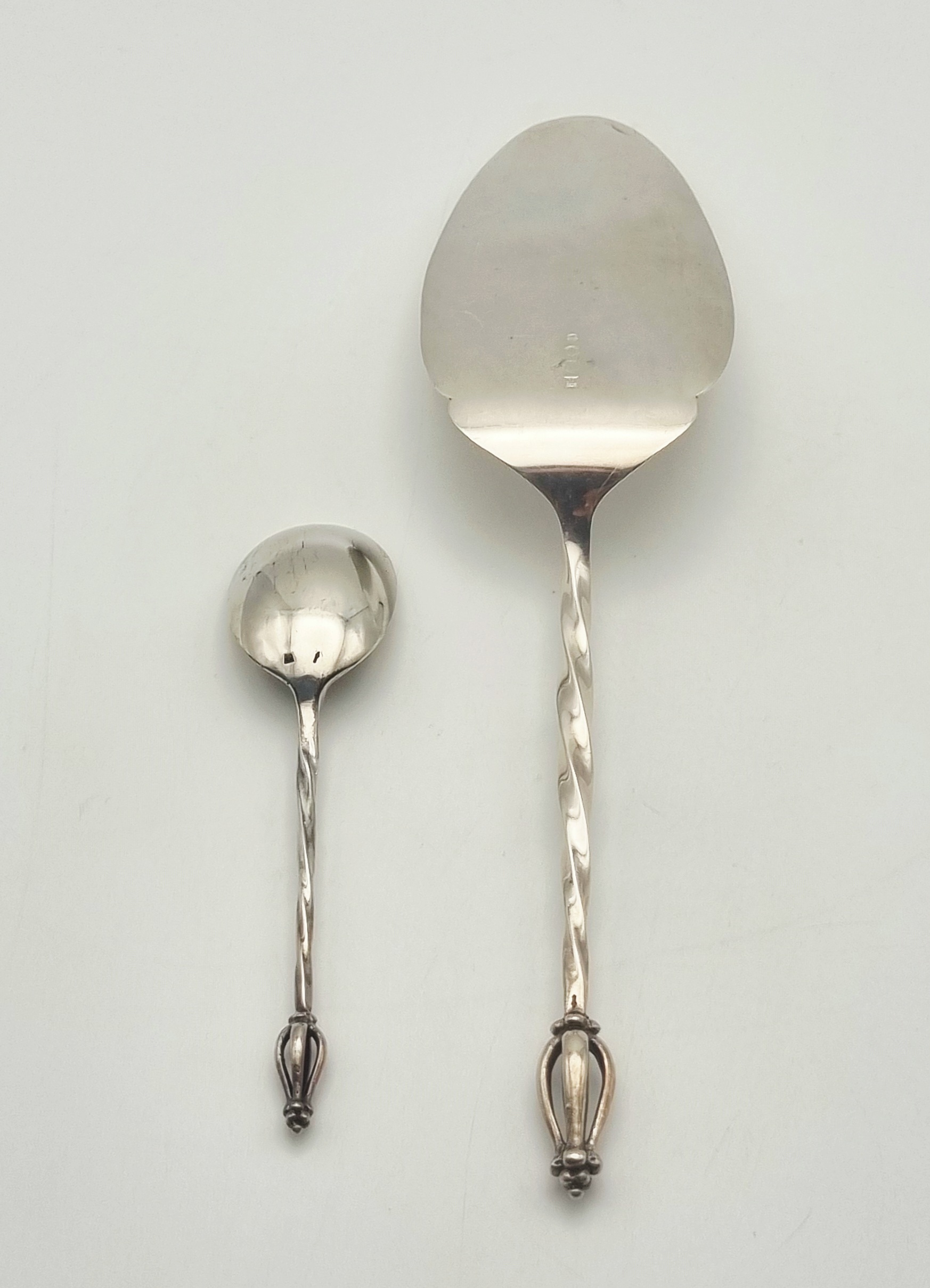Zilveren taart -en suikerschep, Van Kempen & Begeer, ca. 1965