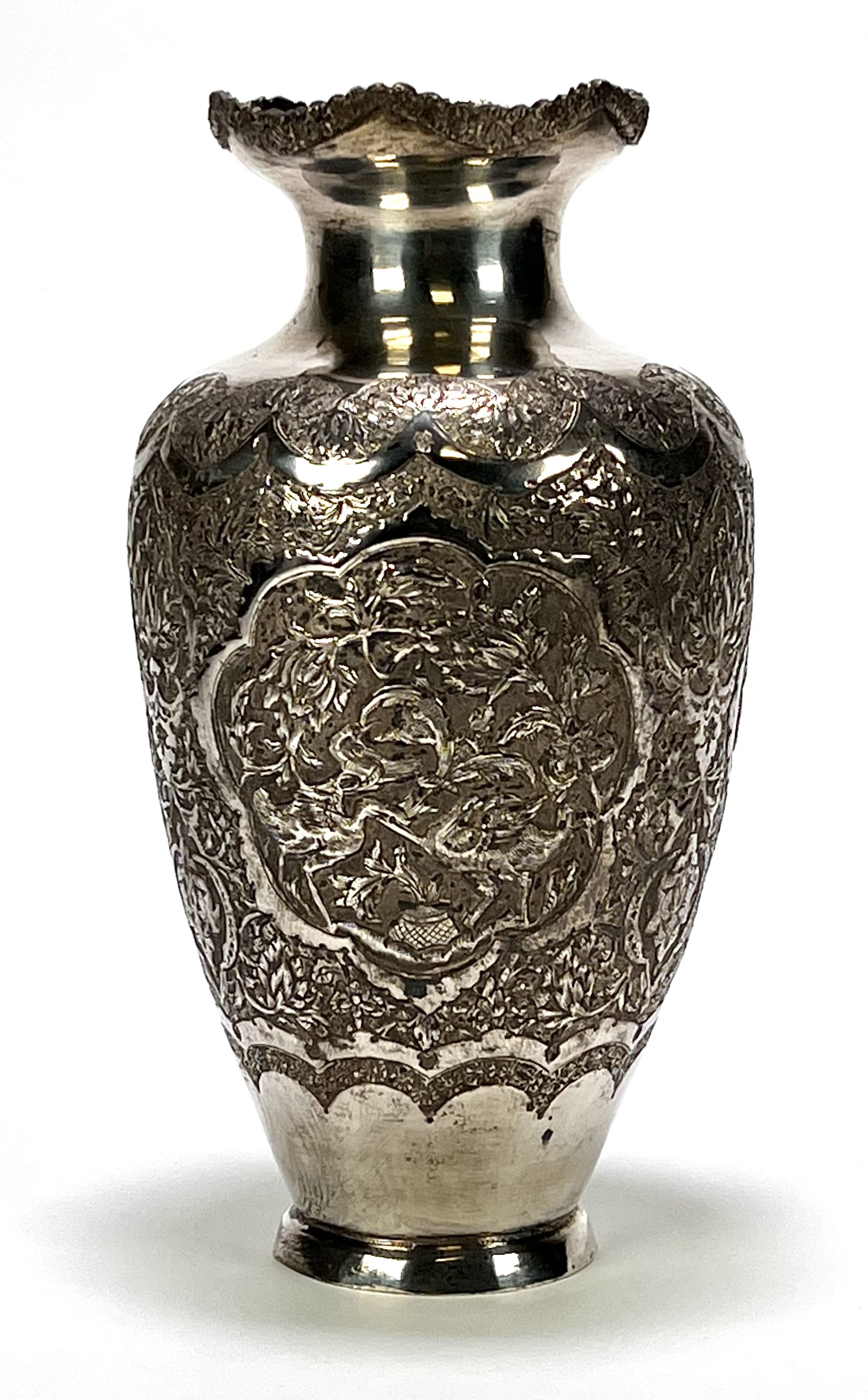 Zilveren vaas met Gol-o-Morgh decor - Isfahan traditie, Perzië, midden 20e eeuw