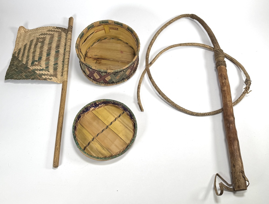 Vlechtwerk, Nieuw-Guinea – zweep, vlag en mand, midden 20e eeuw