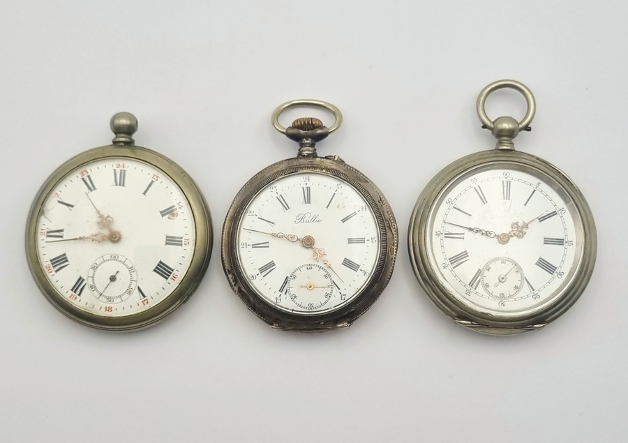 1367. Drie zakhorloges - een zilveren Bulla exemplaar, begin 20e eeuw