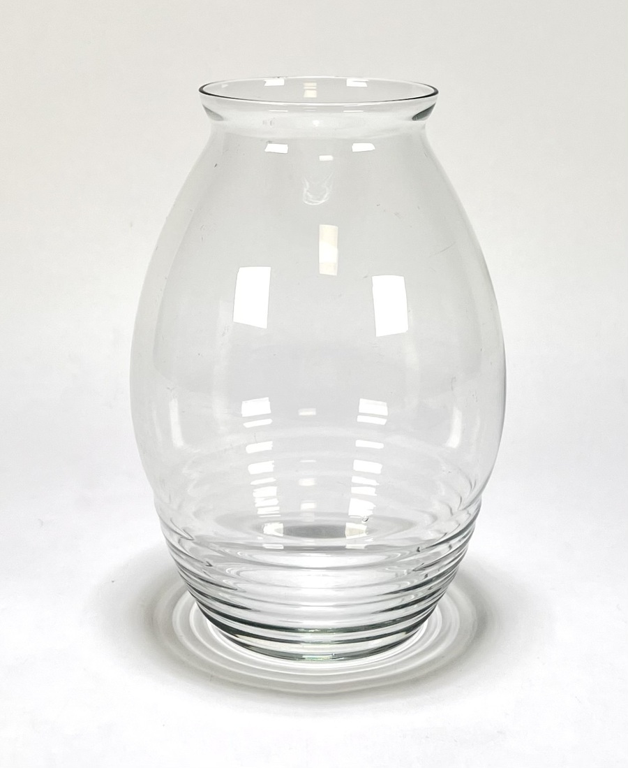 Vaas door Andries Dirk Copier (1901–1991), in helder glas met een karakteristiek optiek-decor. De vaas uit de Huishoudcollectie (H-collectie) van Glasfabriek Leerdam toont een eivormig lichaam met horizontale ribben aan de basis. Het ontwerp dateert uit ca. 1930 en heeft een herkomst in Nederland.