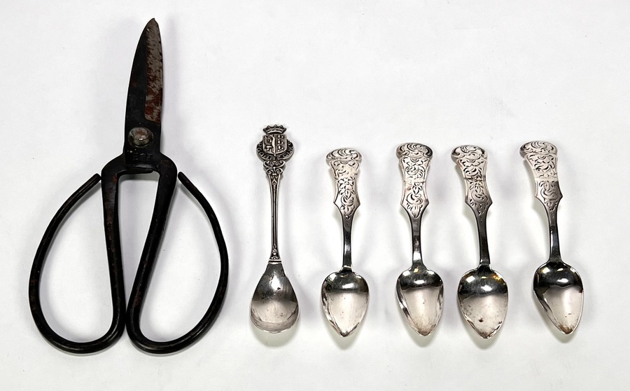 1491. Zilveren theelepels en ijzeren schaar – begin 20e eeuw
