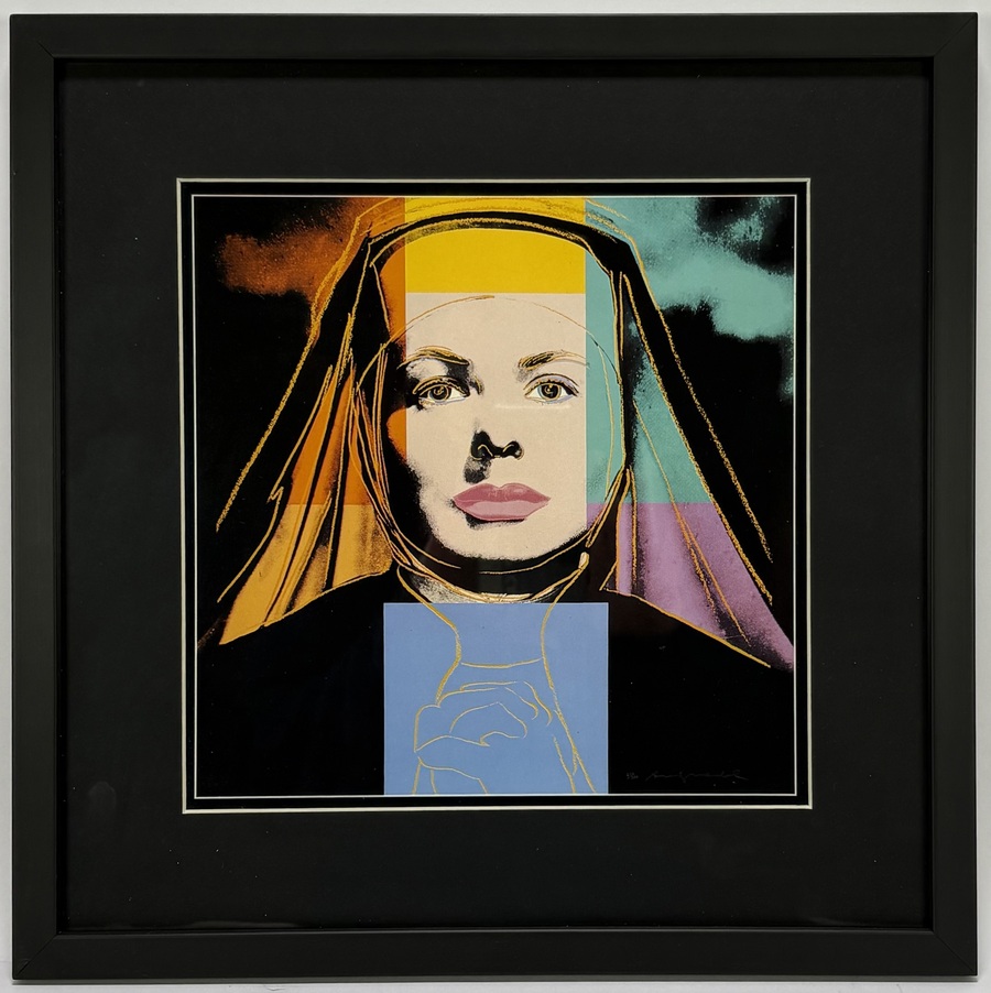 Kleurendruk door Andy Warhol (1928–1987) toont het portret van Ingrid Bergman als The Nun in Pop Art stijl, uitgevoerd in negen kleurendruk op papier. De kleurendruk uit 1983 werd uitgegeven door Galerie Börjeson in Malmö, Zweden. De druk is rechtsonder in de plaat gesigneerd en genummerd 200/250.