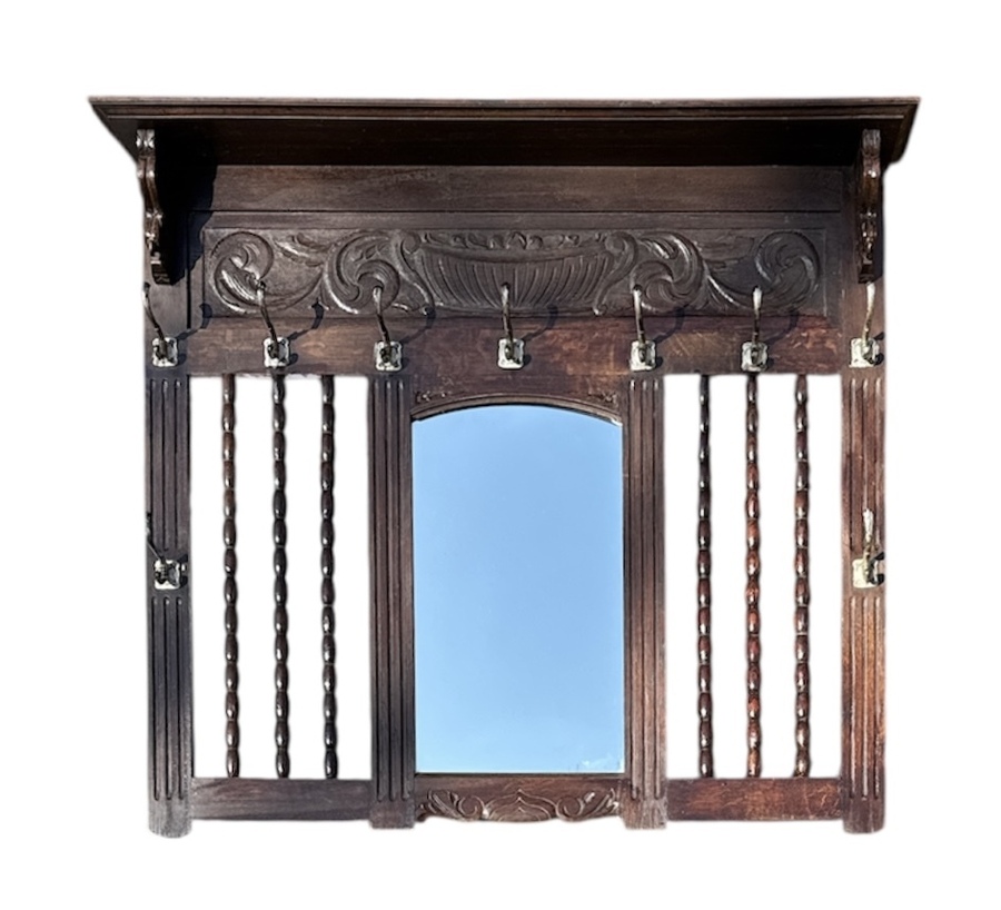 1150. Eikenhouten wandkapstok met spiegel, ca. 1900
