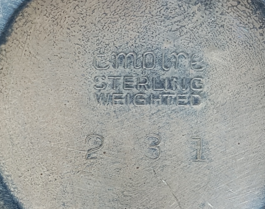 Sterling zilveren peper -en zoutstel in neoklassieke stijl, uitgevoerd als een paar met balustvormig lichaam, gewelfde strooidoppen, getorste randprofilering en glazen reservoirs. Onderzijde gemerkt Empire Sterling Weighted 231, te verbinden aan Empire Silver Co., en duidt op Amerikaans werk uit het midden van de 20e eeuw. Geïnteresseerd? Bezoek onze kijkdagen op 10, 11 en 12 april van 11:00 tot 17:00 uur! |