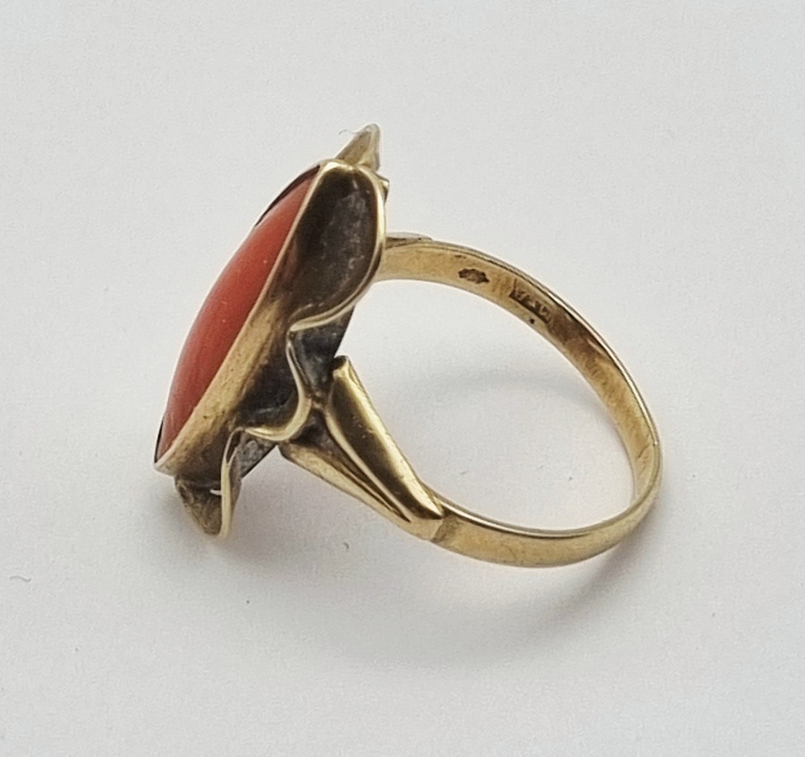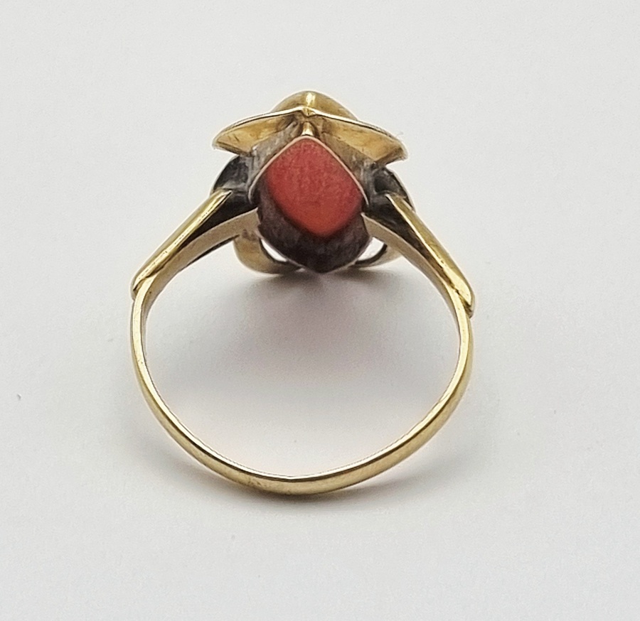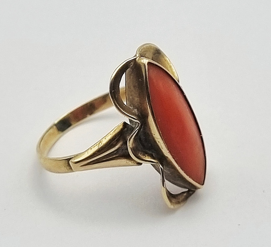 Gouden ring met bloedkoraal, midden 20e eeuw
